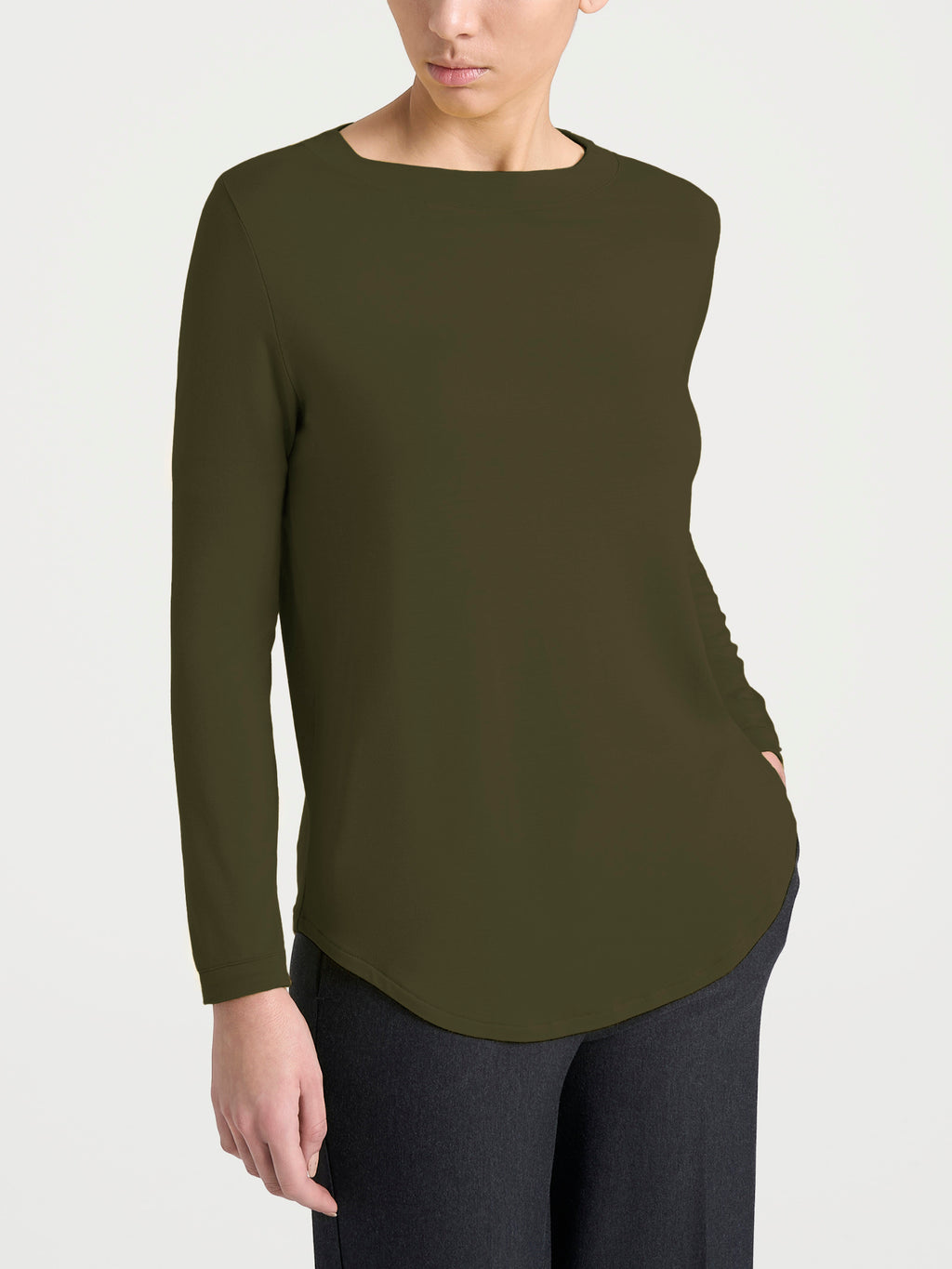 Women's boat-neck t-shirt with long sleeves.Soft fit gives a natural fit designed to enhance any body type without constriction.Paired with Ragno Pants, it is easily transformed into a casual, eleg...