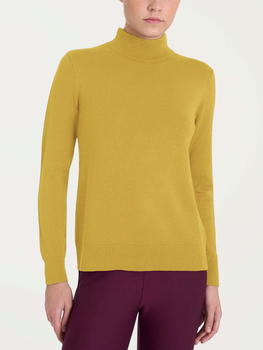 The mock neck adds a touch of elegance and comfort, making the sweater easy to match with various wardrobe pieces. Ideal for creating fashionable looks, it pairs perfectly with Ragno's pants. The sweater gently hugs the body without tightening, enhancing the feminine silhouette gracefully.