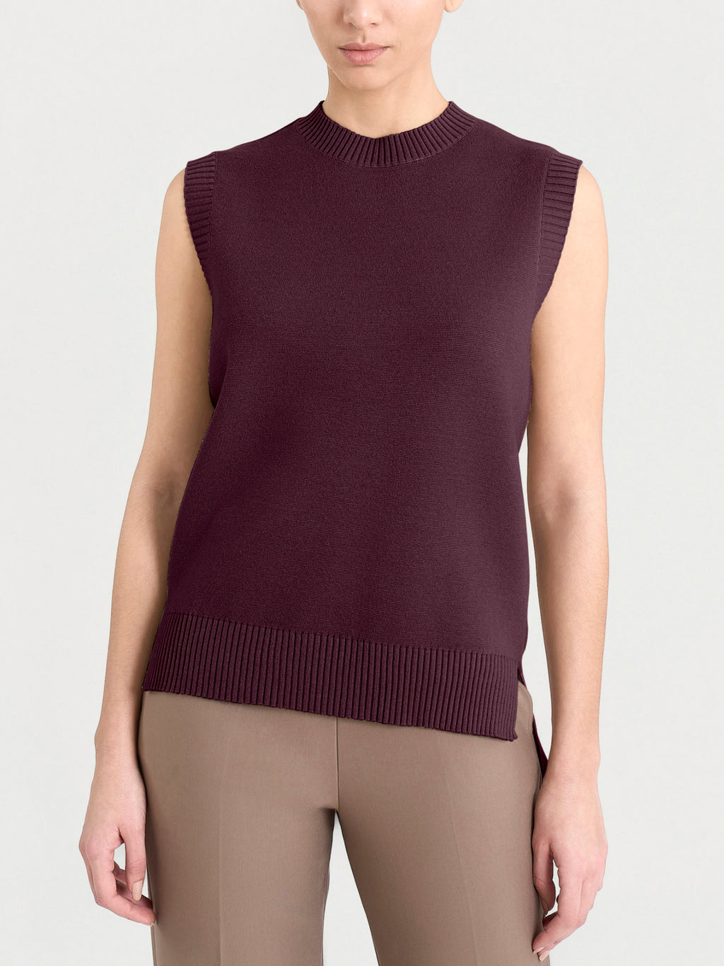 Women's sleeveless sweater made of viscose, 12-gauge fabric that is warm, soft and practical.