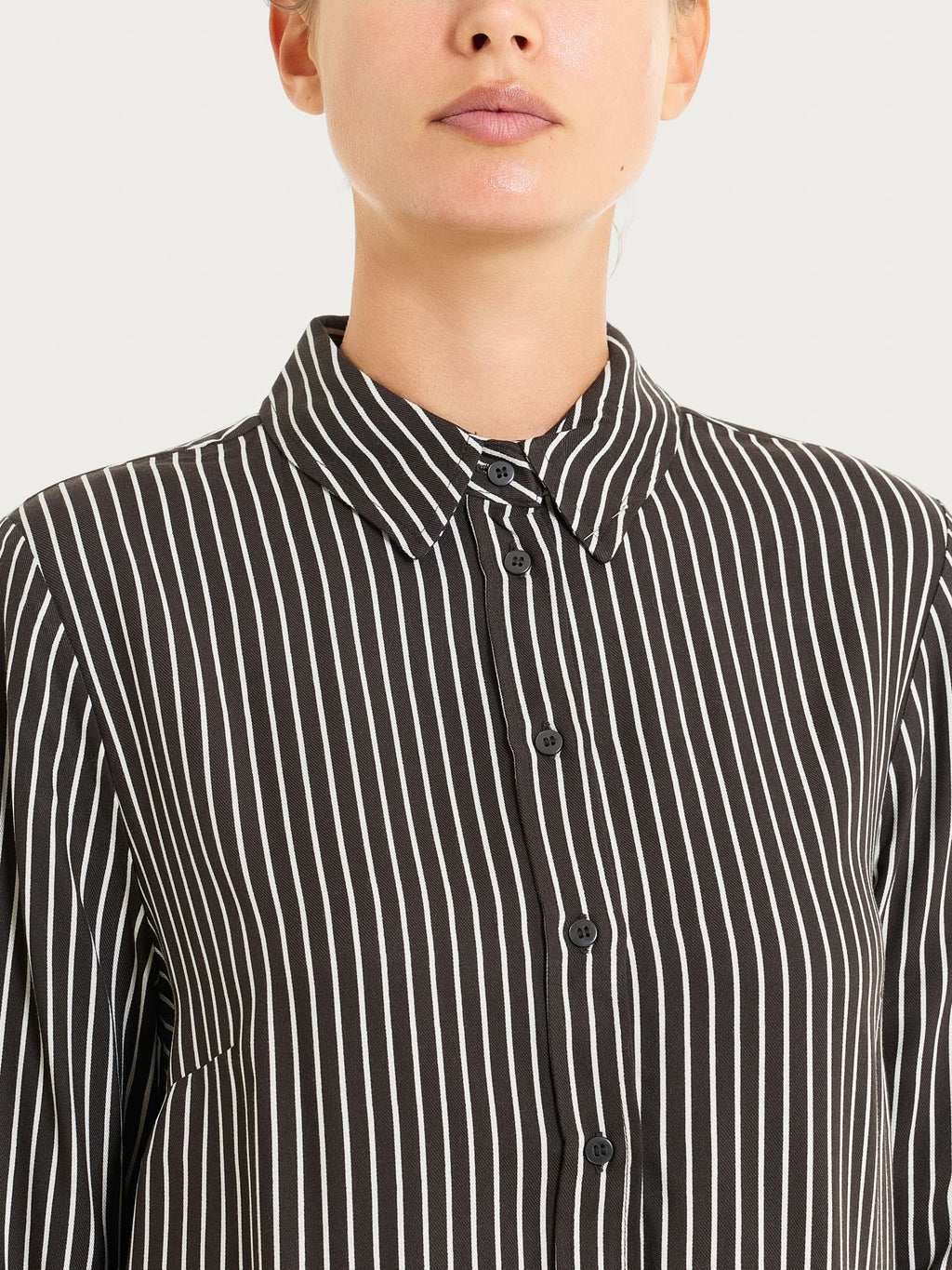 Featuring a striped pattern that delicately descends throughout the garment repeating regularly and with a button closure at the cuffs for easy wearing without compromising its elegance.