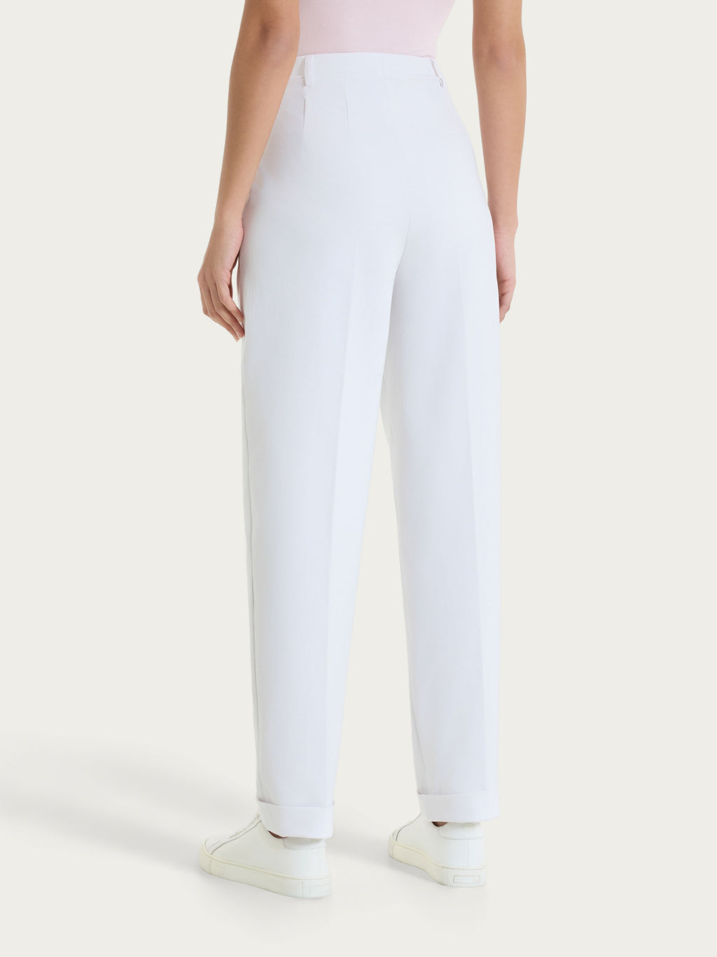 Women's carrot pants with tapered fit, slightly wide leg tapers toward the ankle with cropped ankle length.