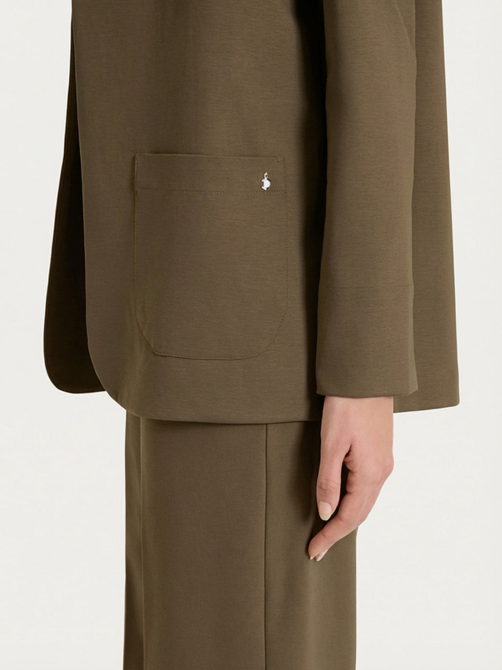 Women's buttonless and lapelless blazer with an essential and modern design.