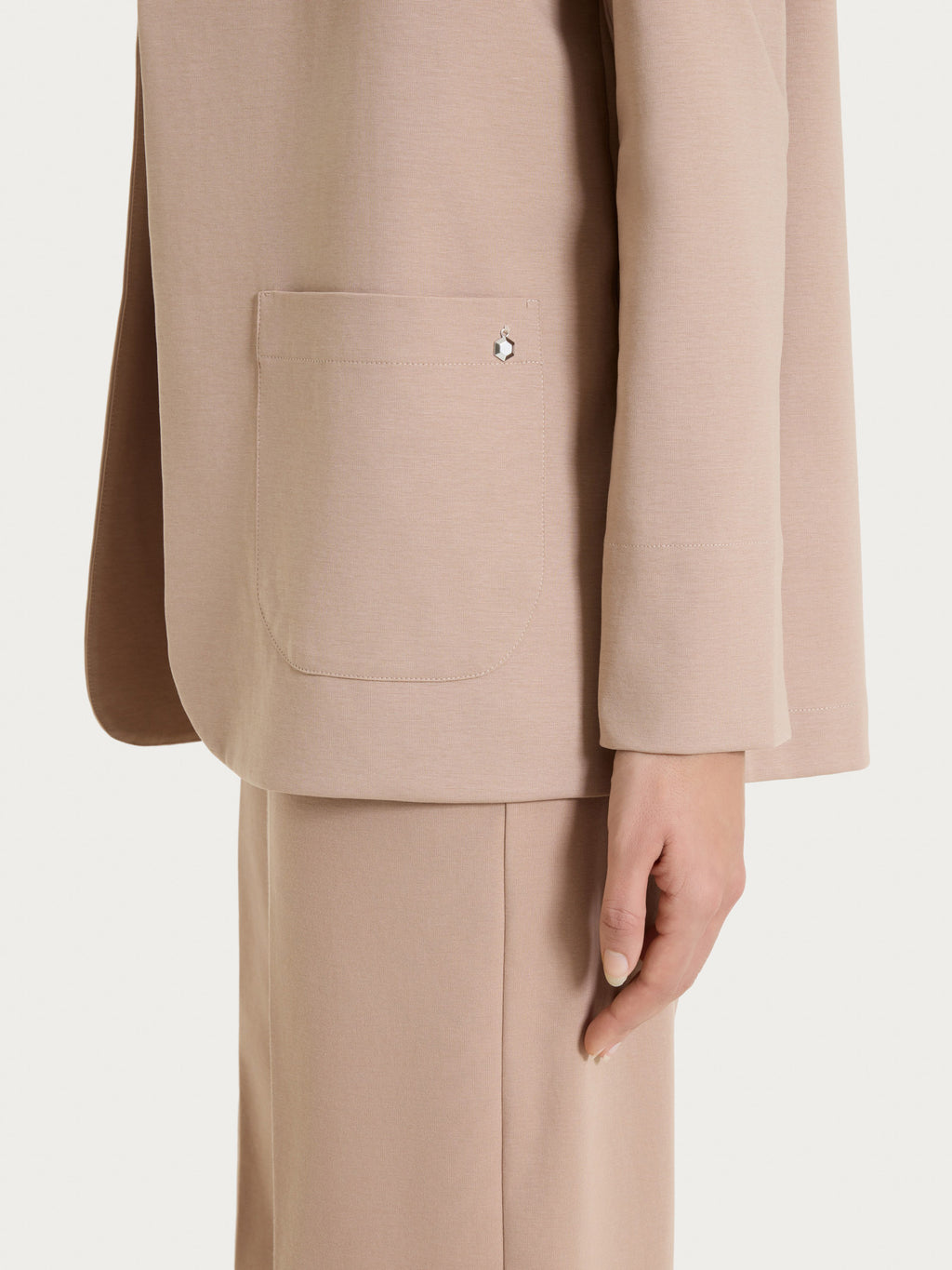 Women's buttonless and lapelless blazer with an essential and modern design.