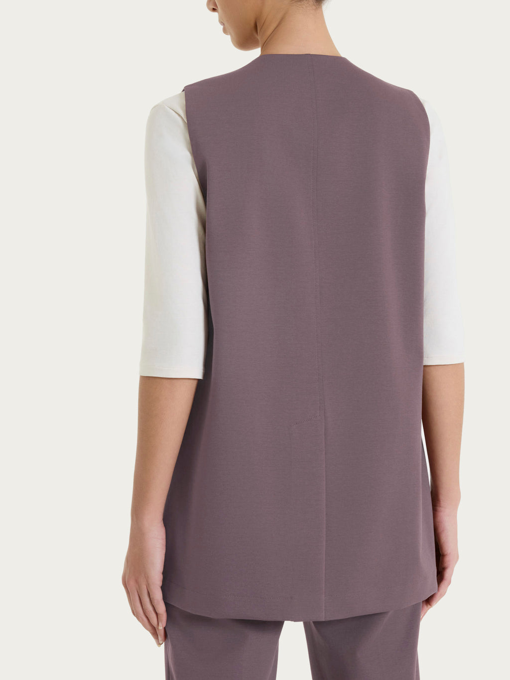 The collarless design keeps the shape simple and contemporary, highlighting the outfit and making it easy to pair with both dressy pants and more casual denim and garments.