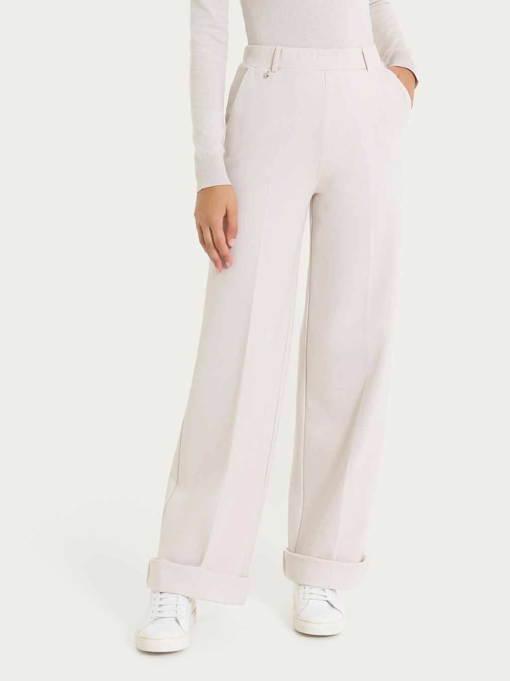 The garment offers the perfect balance of style, comfort and functionality. The palazzo cut gives a sophisticated and elegant look, allowing the garment to fall naturally down the leg and creating a flowing, slender silhouette.