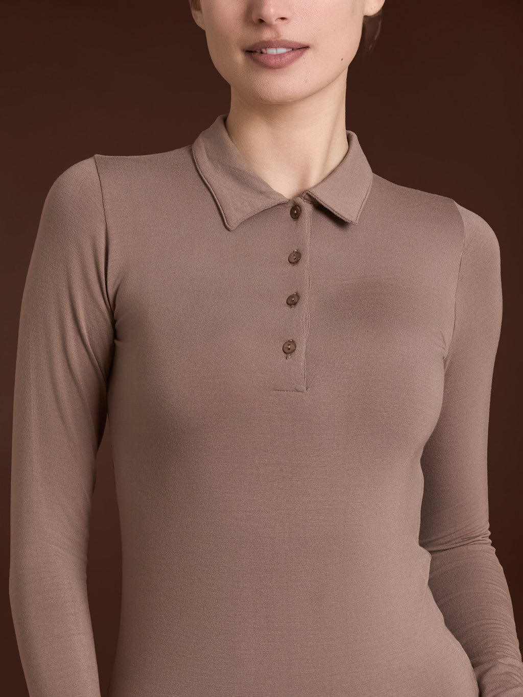 Long-sleeved women's polo shirt made of ecoviscose, a soft and warm stretch viscose.