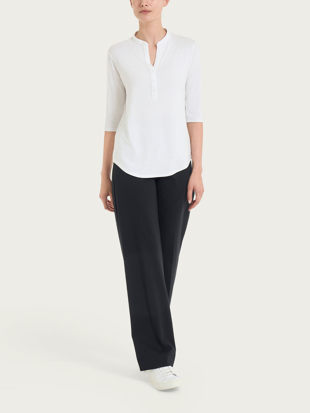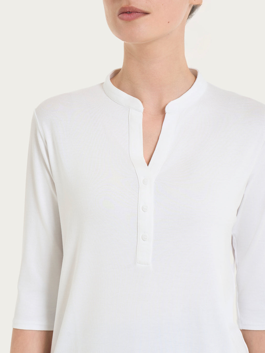 Women's t-shirt with serape neck and 3/4 sleeve.