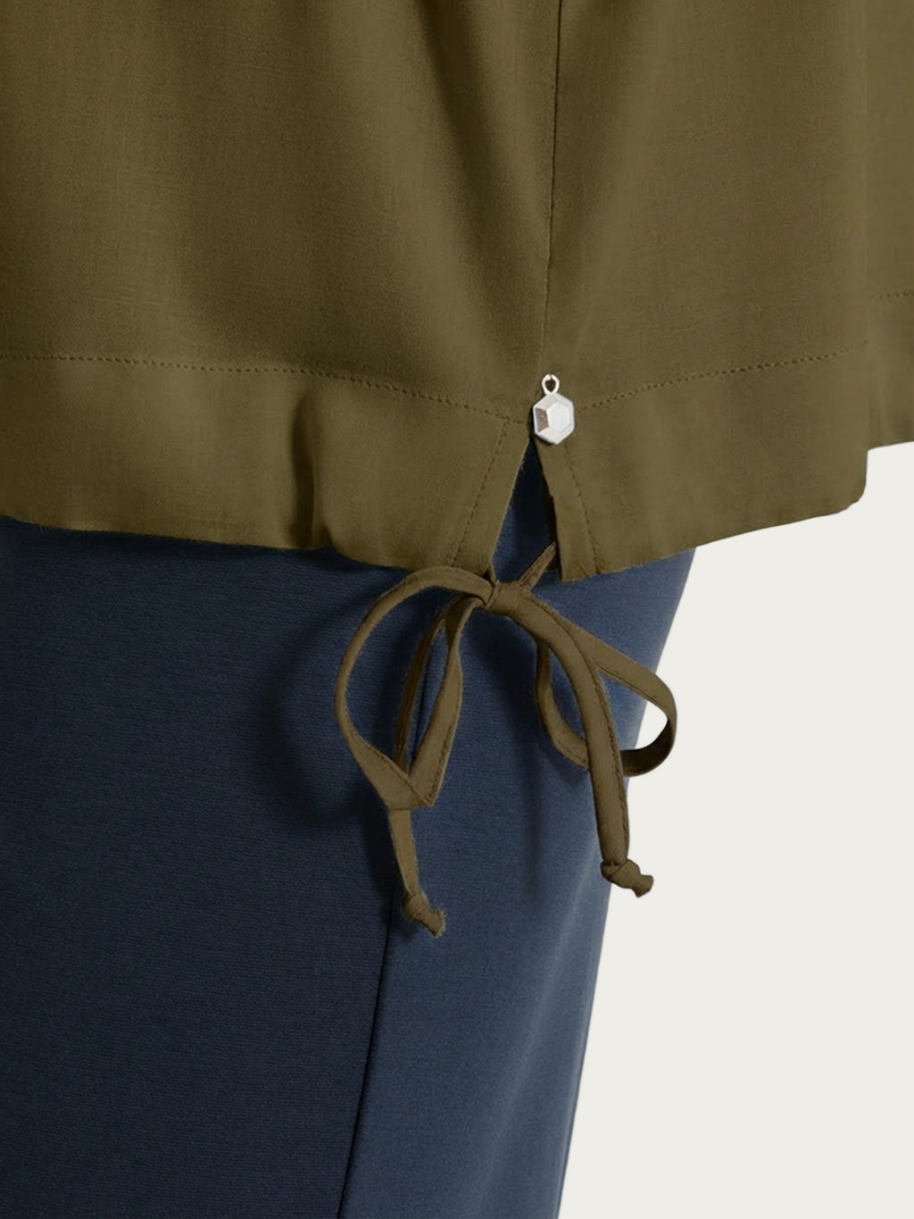 The turn-up sleeve makes it easy to vary the length, increasing the garment's versatility in everyday wear, while the practical side drawstring makes it easy to wear.