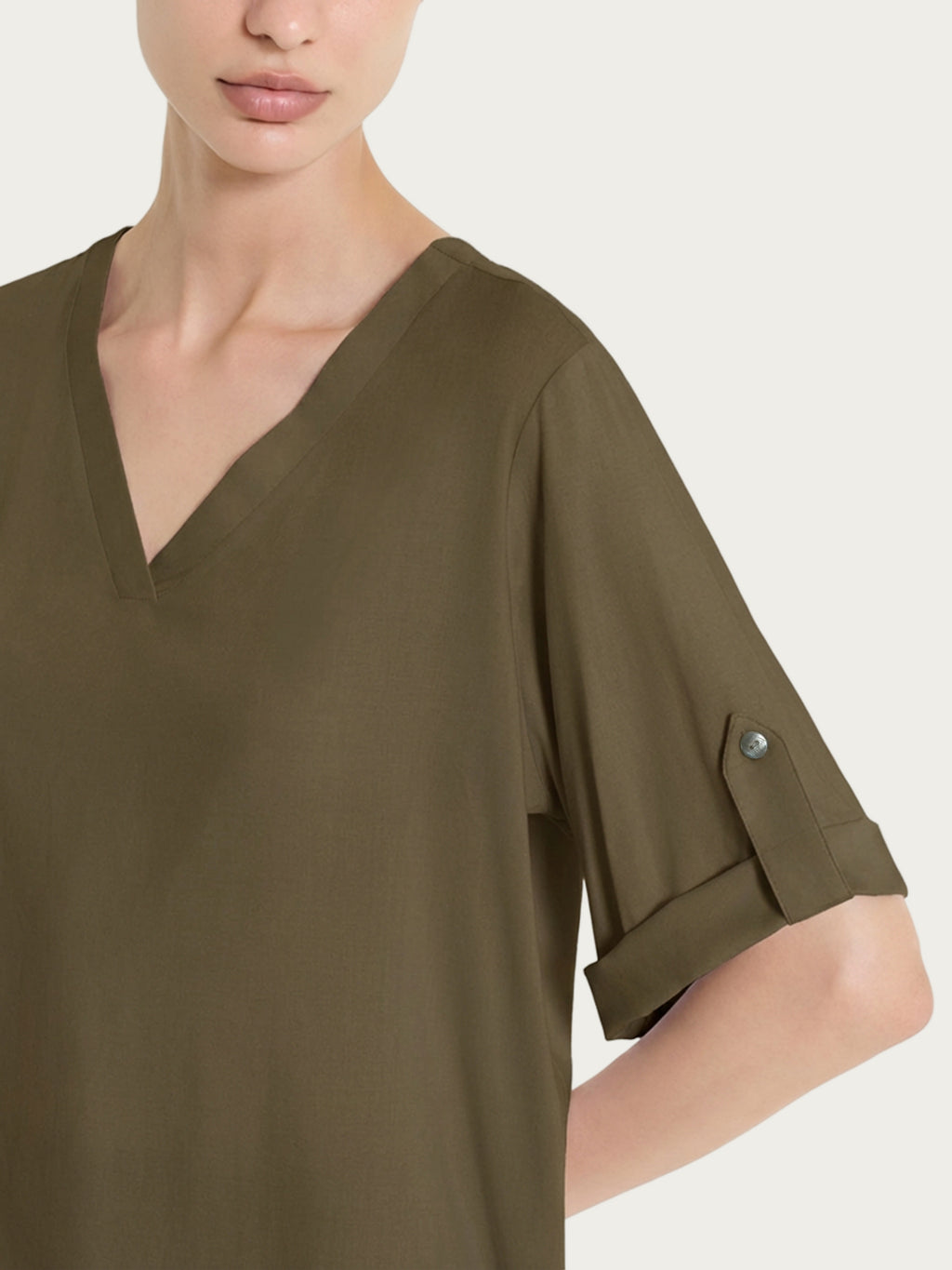 The V-neck enhances the upper part with an essential and defined line, while the soft fit ensures comfort and freedom of movement.