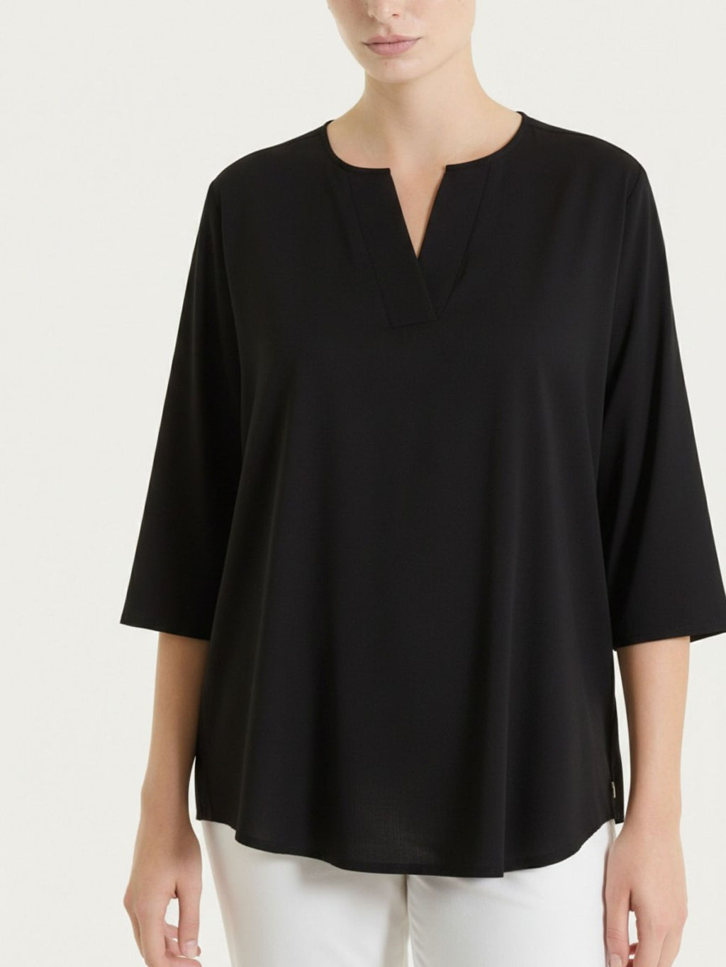 Women's blouse with a V-neck and wide 3/4 sleeve.