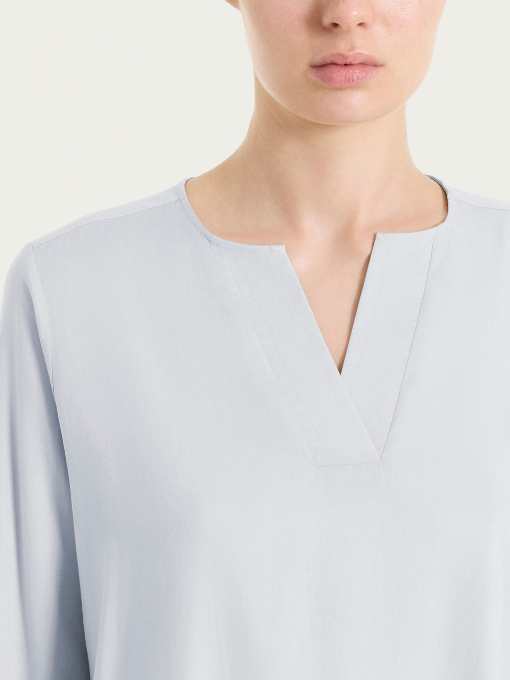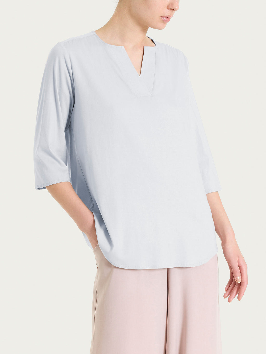 Blusa de mujer con escote en pico y mangas 3/4 anchas.