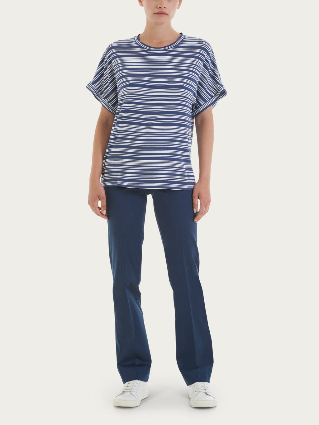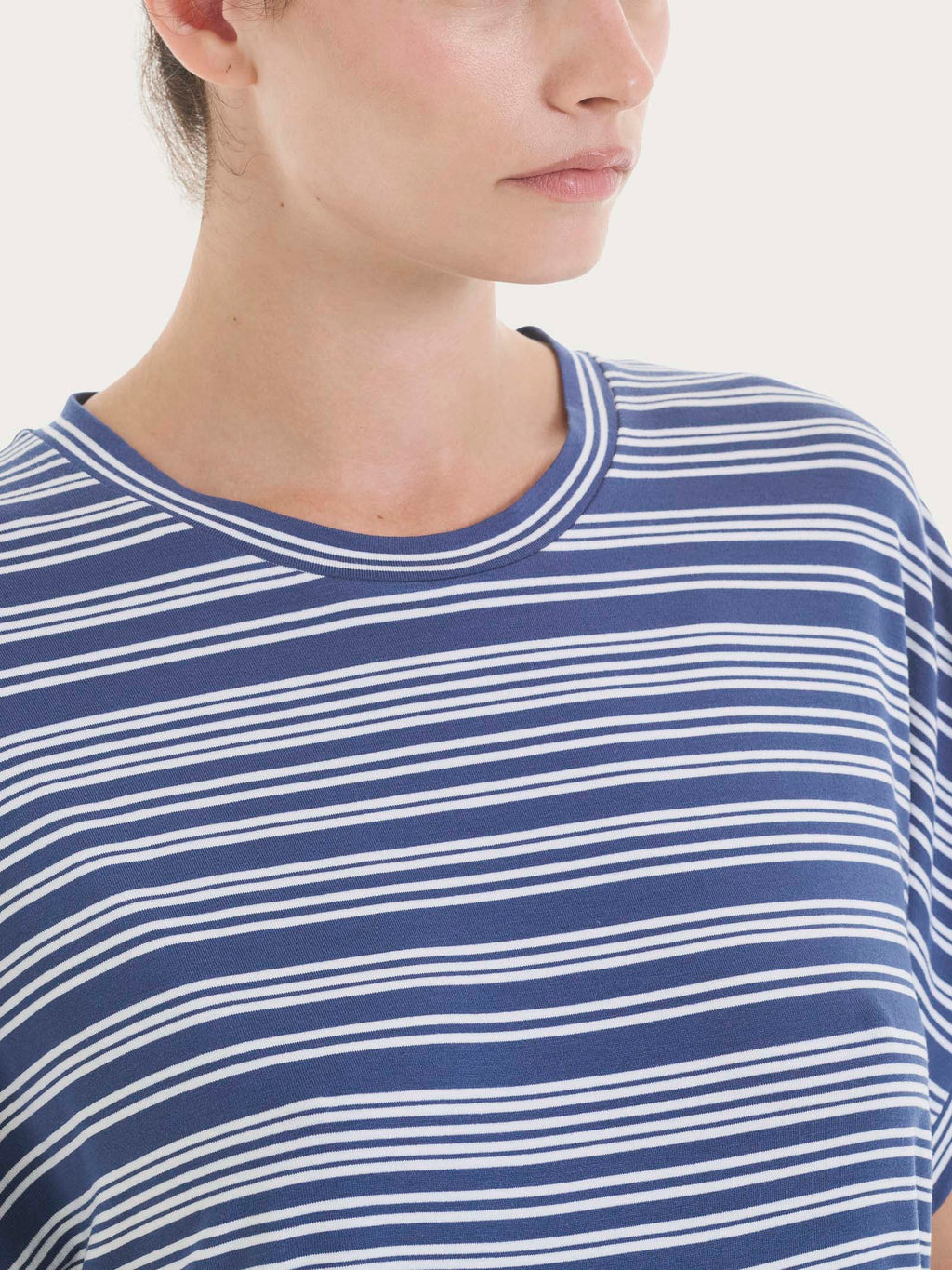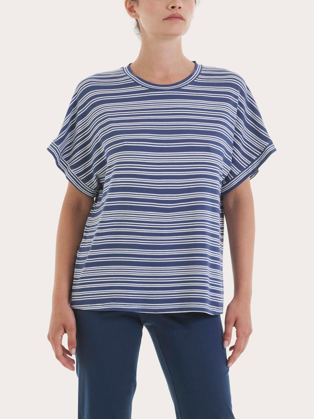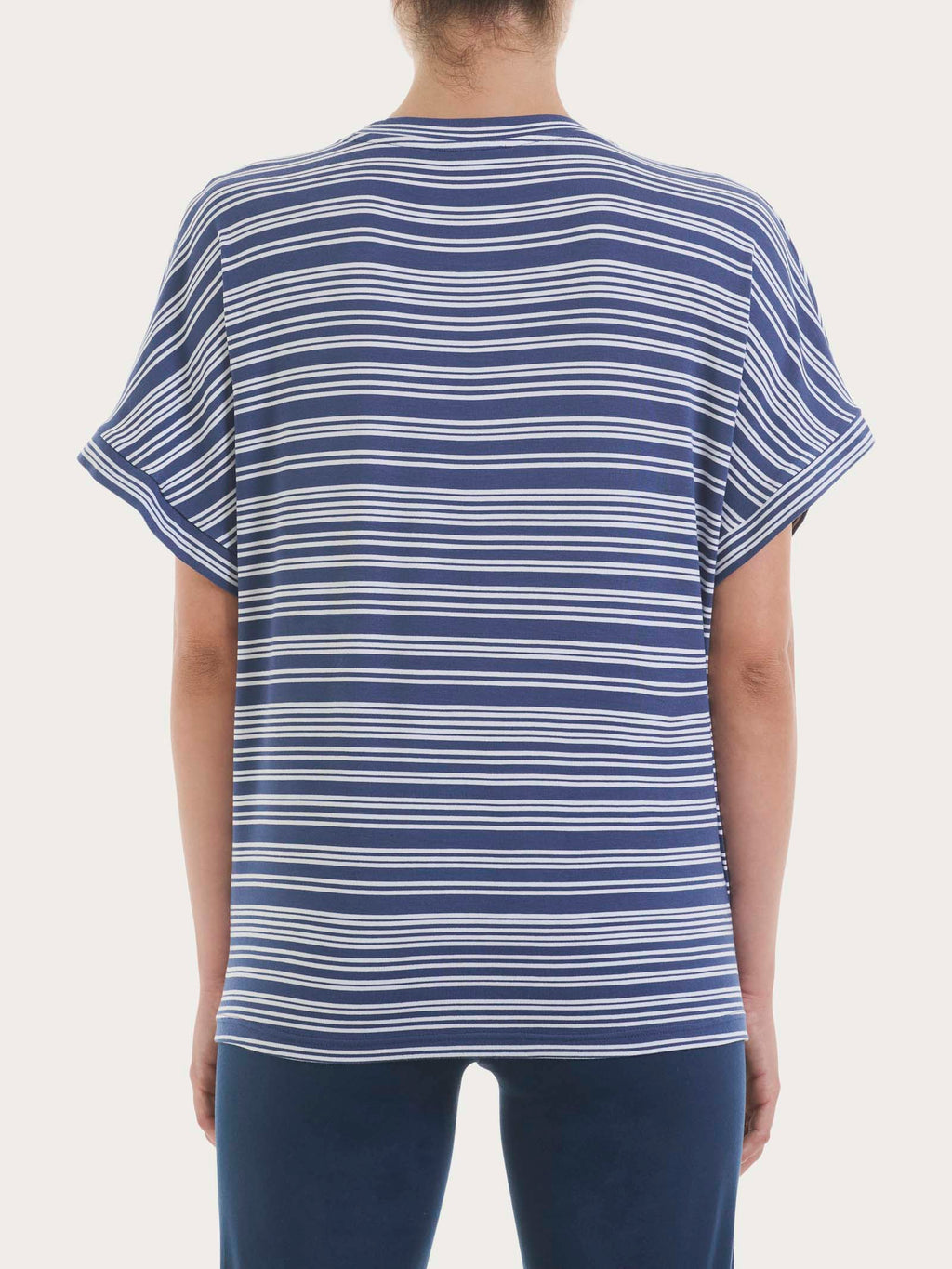 Camiseta de rayas alternas para mujer con cuello redondo y manga corta.