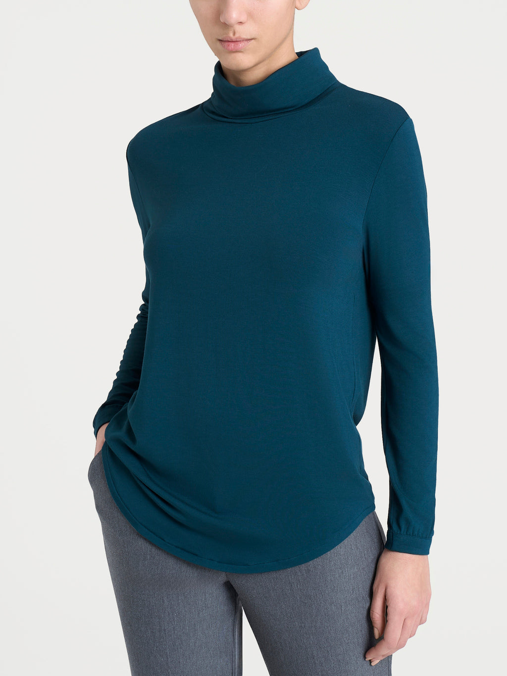 Camiseta con suave cuello redondo y manga larga para mujer.