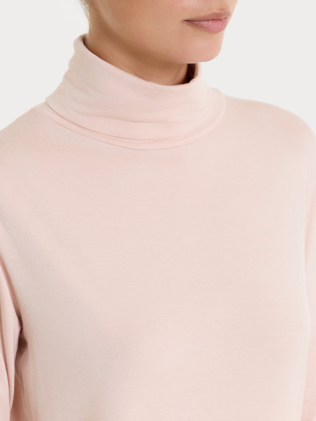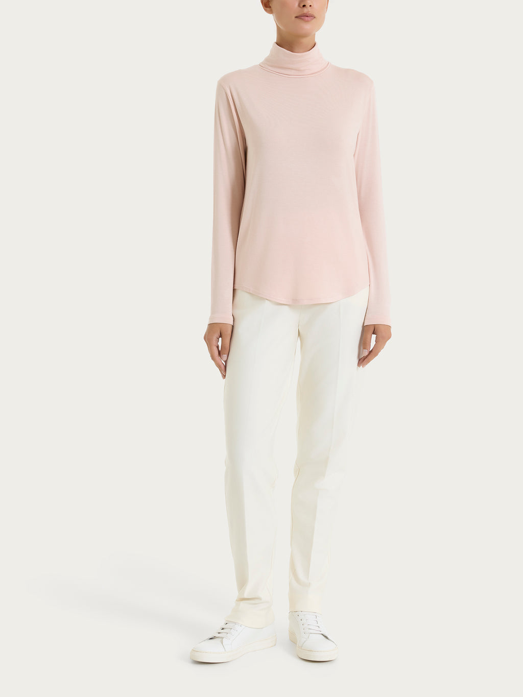 Camiseta de suave cuello redondo y manga larga para mujer.
