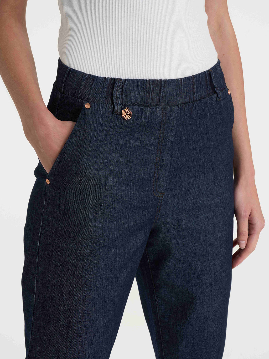 Jeans de mujer con corte cónico, la pierna ligeramente ancha se estrecha hacia el tobillo.