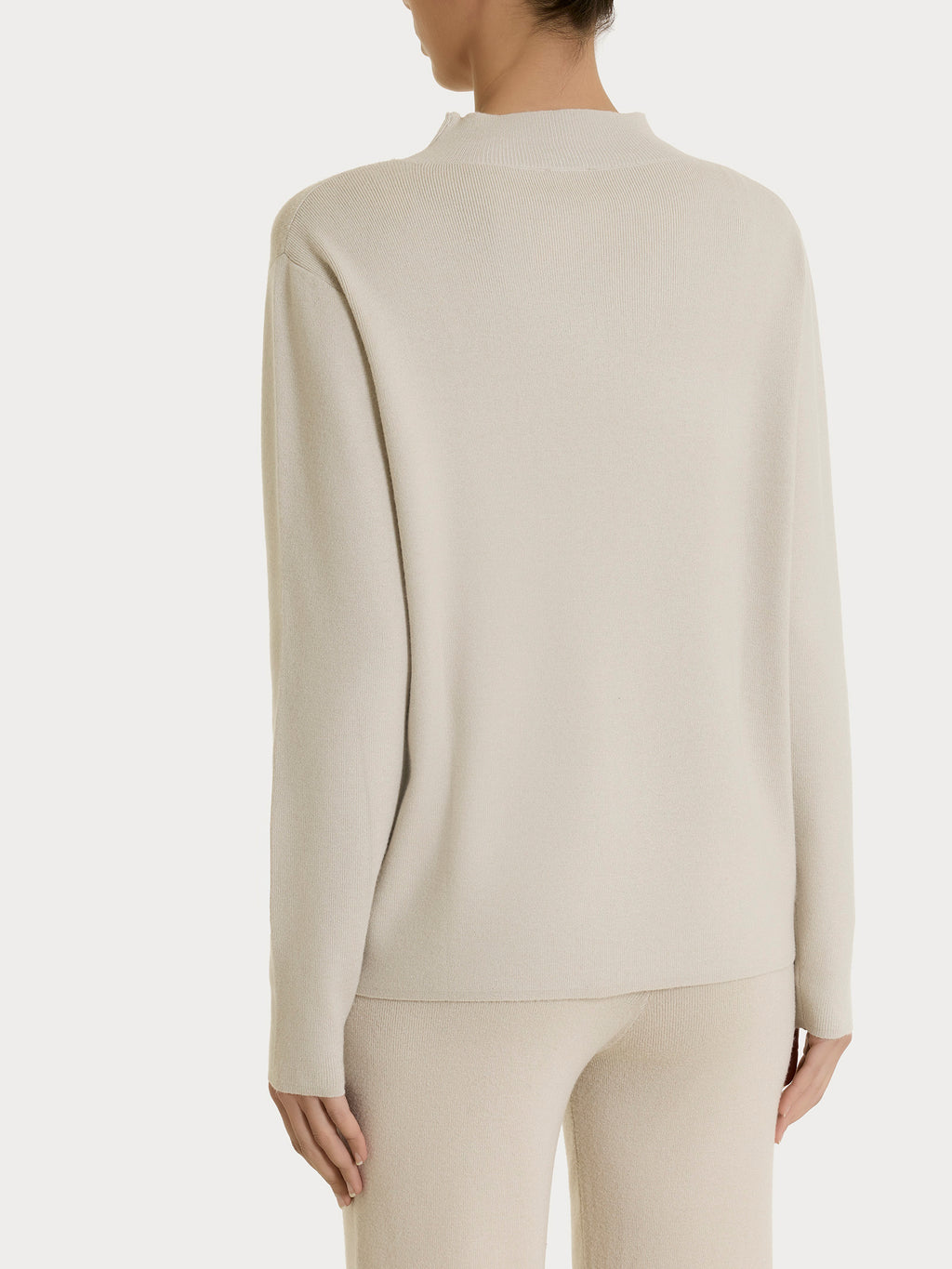 Maglia con collo lupetto a vulcano da donna in maglia unita di finezza 12.