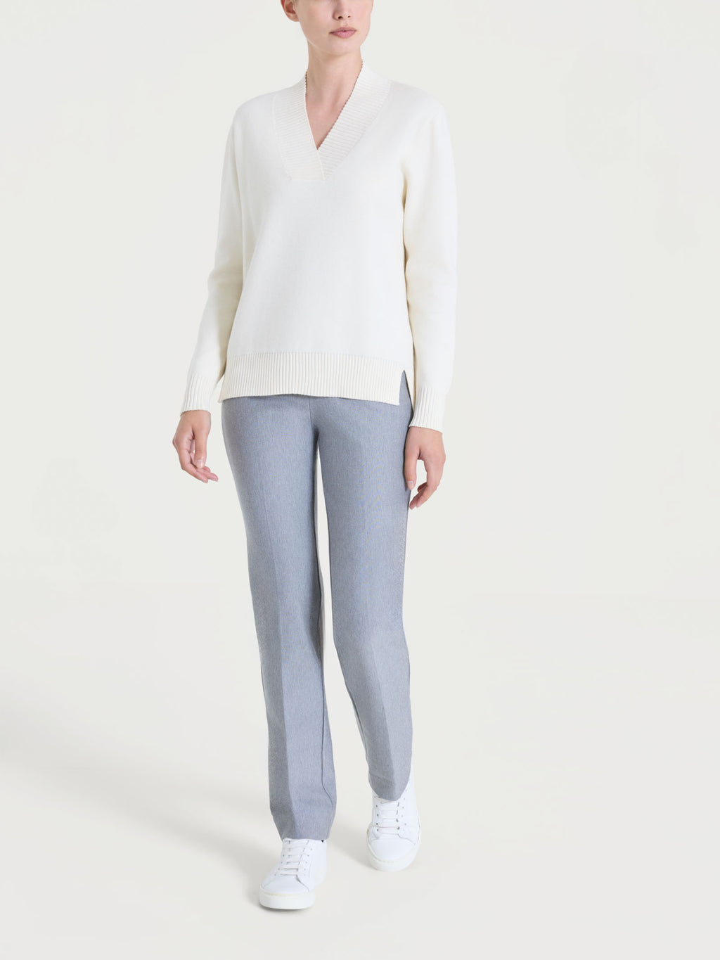 Maglia asimmetrica con scollo a V in Super Soft - Avorio