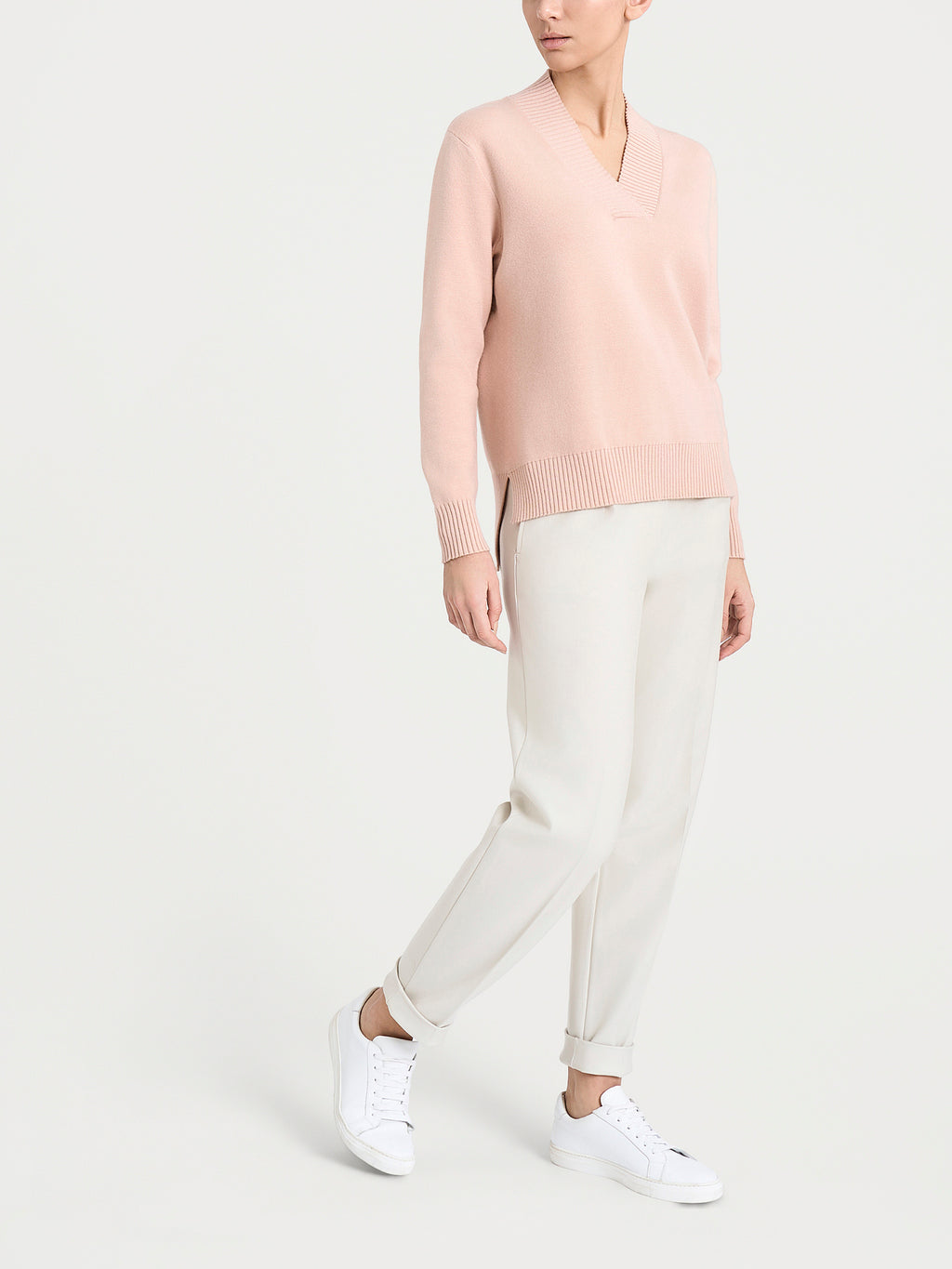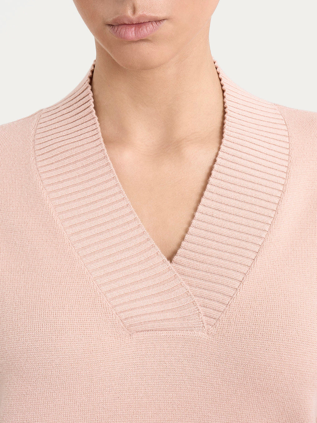 Maglia asimmetrica con scollo a V in Super Soft - Cameo Rose