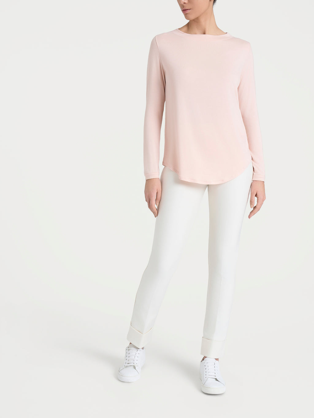 Maglietta con collo a barchetta e manica lunga da donna.
