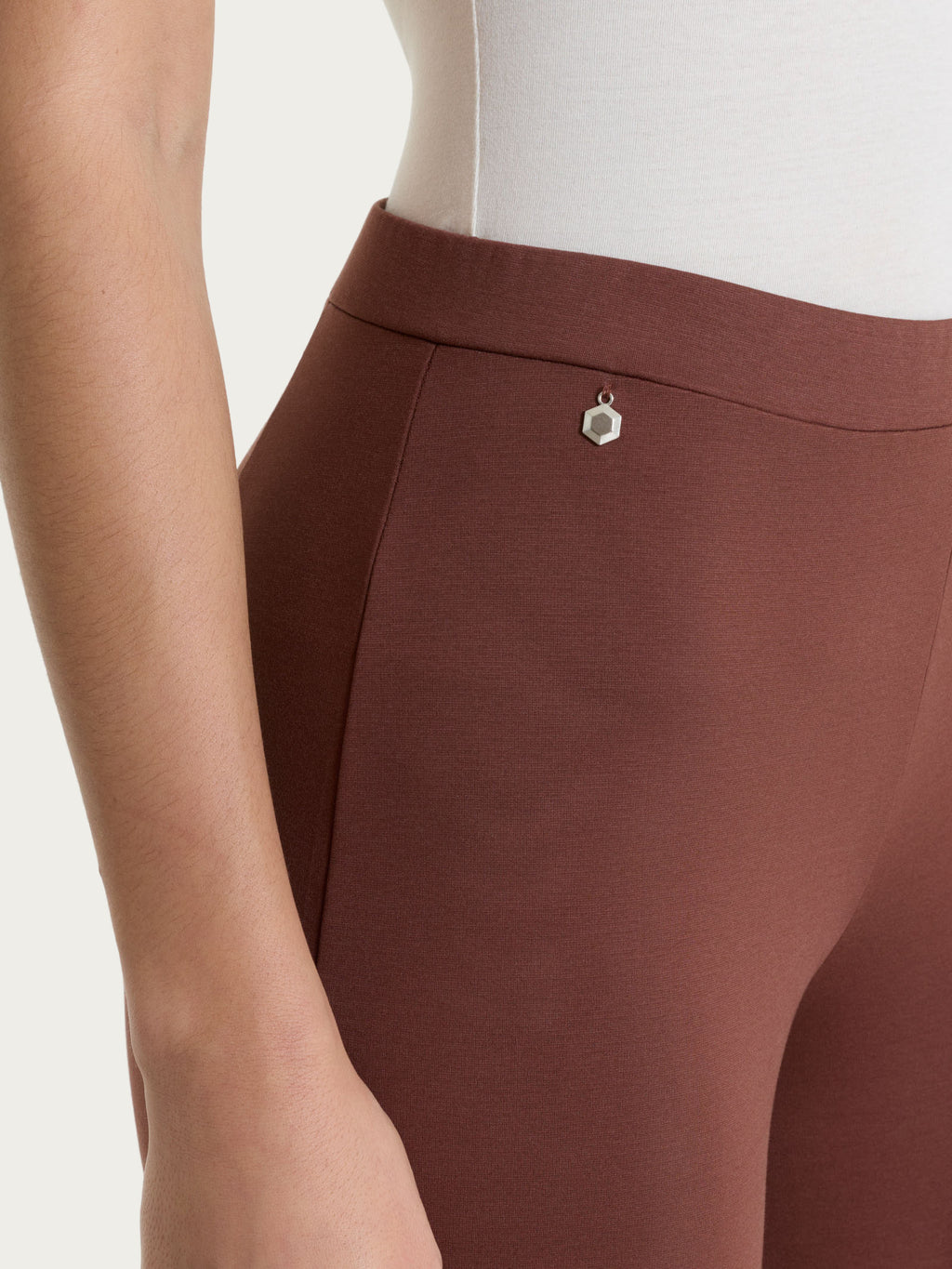 Questo modello è costruito con vita elasticizzata e senza zip e senza tasche. Comodo come indossare un leggings pur mantenendo l'eleganza di un pantalone.