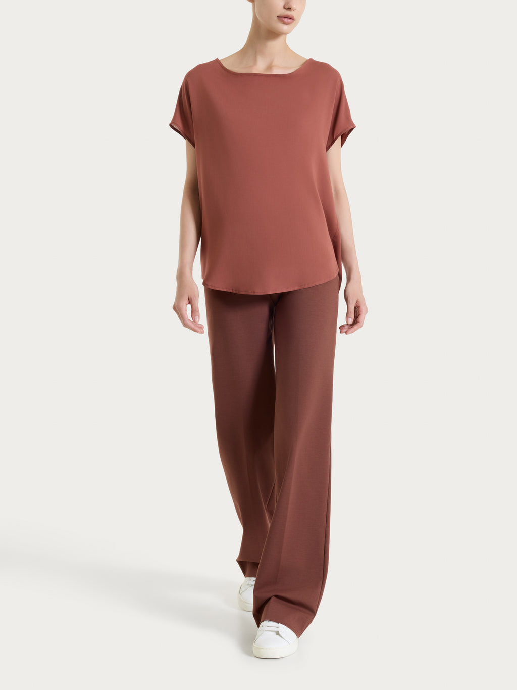 È un capo tinta unita elegante e comodo progettato per garantire una vestibilità facile e senza complicazioni. Lo stile wide leg offre una gamba ampia e fluida, garantendo comfort e libertà di movimento. Nonostante la semplicità del design è il capo perfetto come base per ogni abbinamento sia che si voglia creare un look formale o casual.