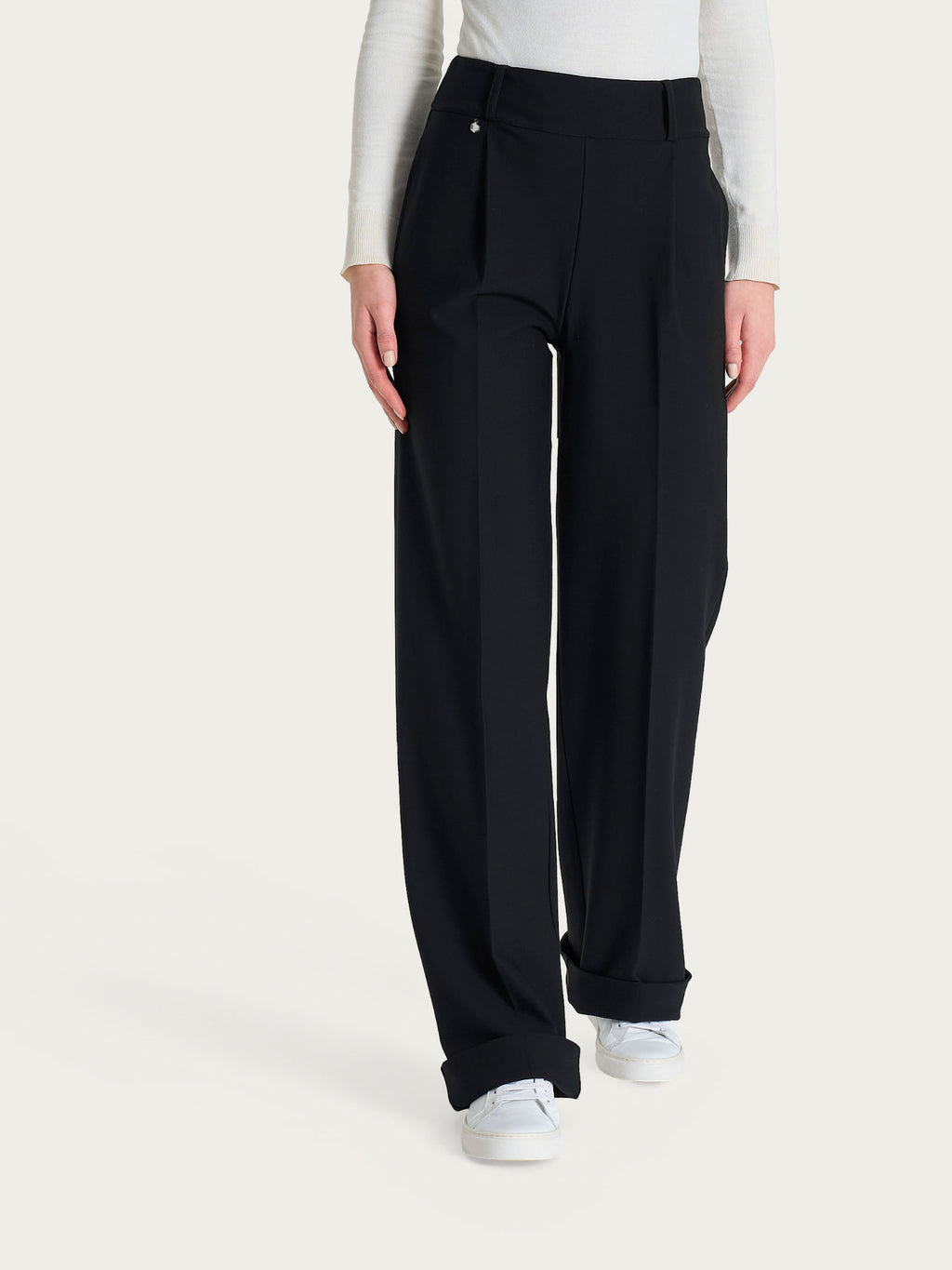 È un capo tinta unita elegante e comodo progettato per garantire una vestibilità facile e senza complicazioni. Lo stile wide leg offre una gamba ampia e fluida, garantendo comfort e libertà di movimento. Nonostante la semplicità del design è il capo perfetto come base per ogni abbinamento sia che si voglia creare un look formale o casual.