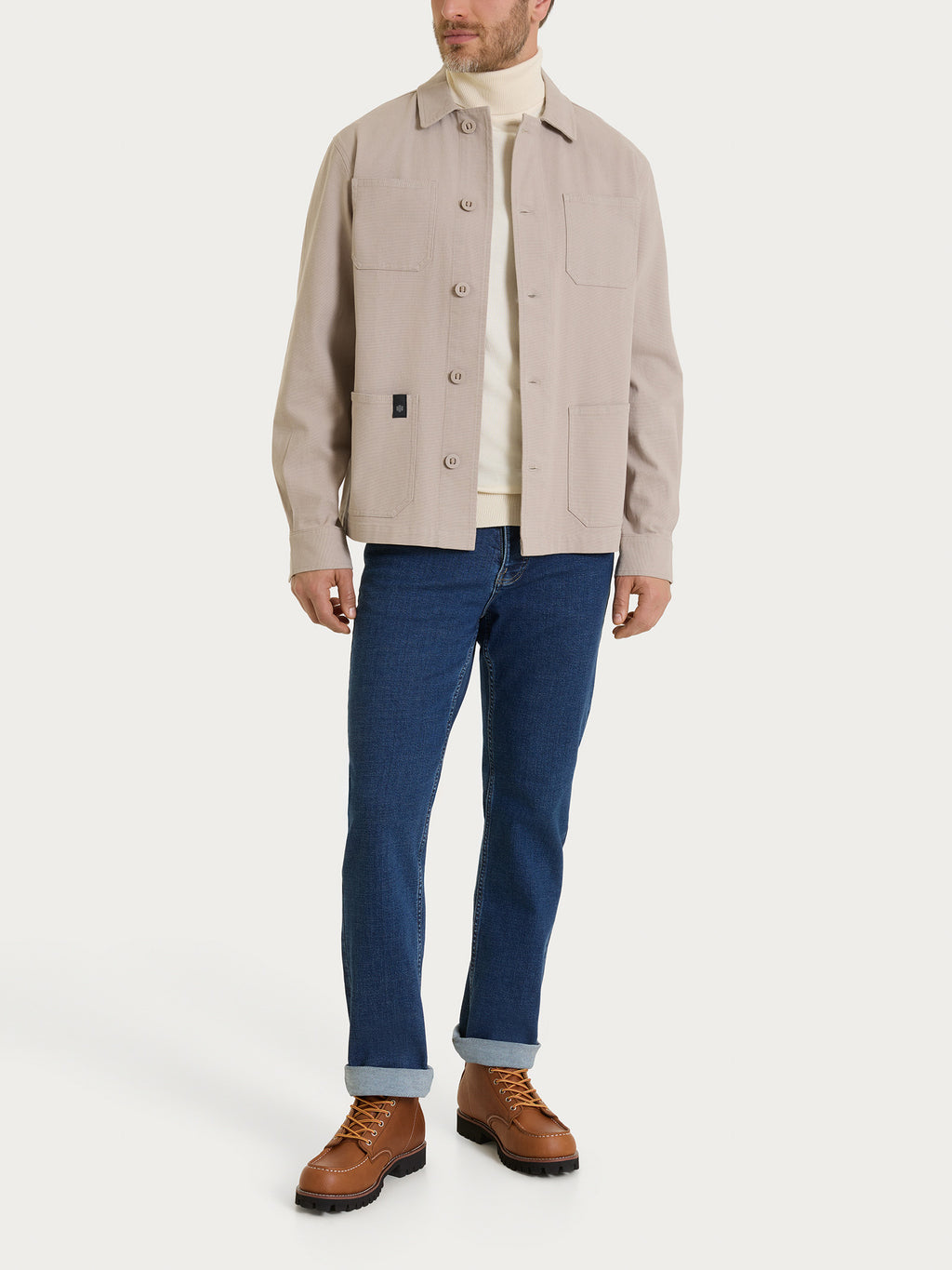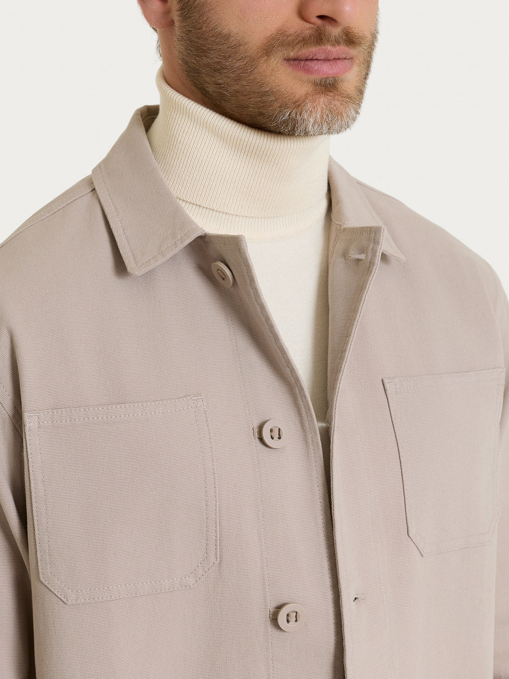 Il modello richiama l’estetica workwear con un design pulito e funzionale, completato da colletto strutturato e chiusura frontale a bottoni rinforzati, per un indosso pratico e sempre curato.