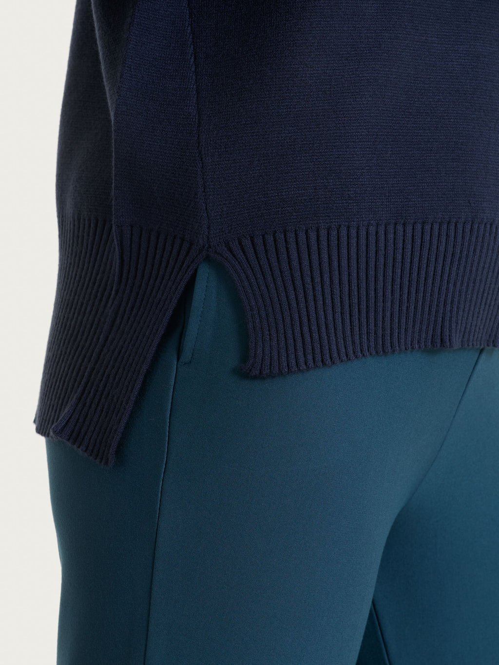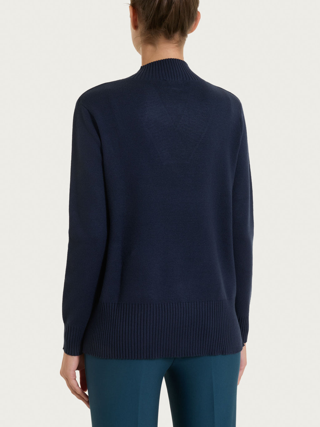 Questo modello presenta comode aperture laterali e pratici polsini e bordature in costina 3x3 che donano al capo un’eleganza sobria e curata.