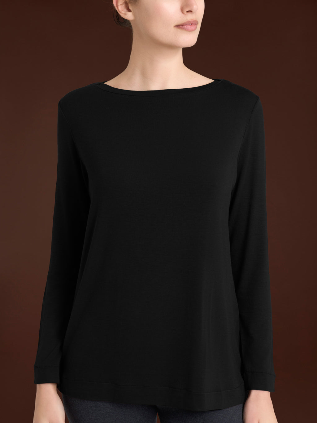Questo capo con una vestibilità è morbida e fluida, per una maggiore comodità e praticità quotidiana, è tinta unita con collo a barchetta e a manica lunga.