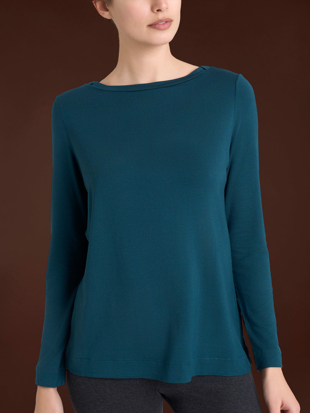 Questo capo con una vestibilità è morbida e fluida, per una maggiore comodità e praticità quotidiana, è tinta unita con collo a barchetta e a manica lunga.