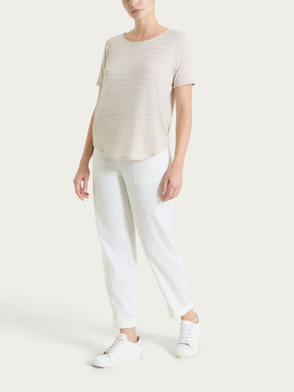 La vestibilità soft scivola sul corpo con naturalezza, offrendo comfort e libertà di movimento per tutta la giornata.