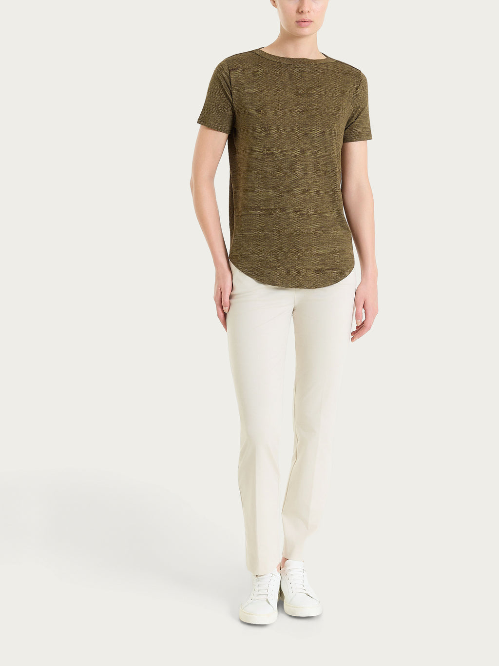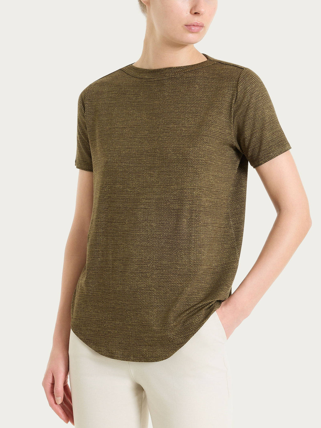 Maglietta da donna con girocollo e manica corta in Crêpe.
