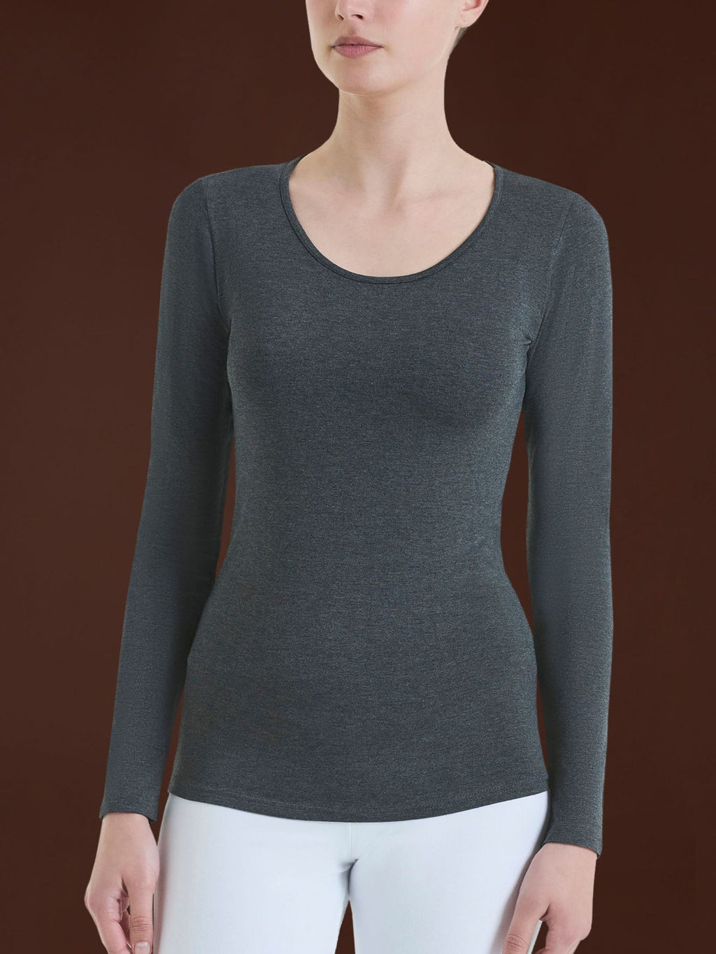 Maglia girocollo a manica lunga da donna in ecoviscosa, una delicata viscosa elasticizzata calda e morbida.