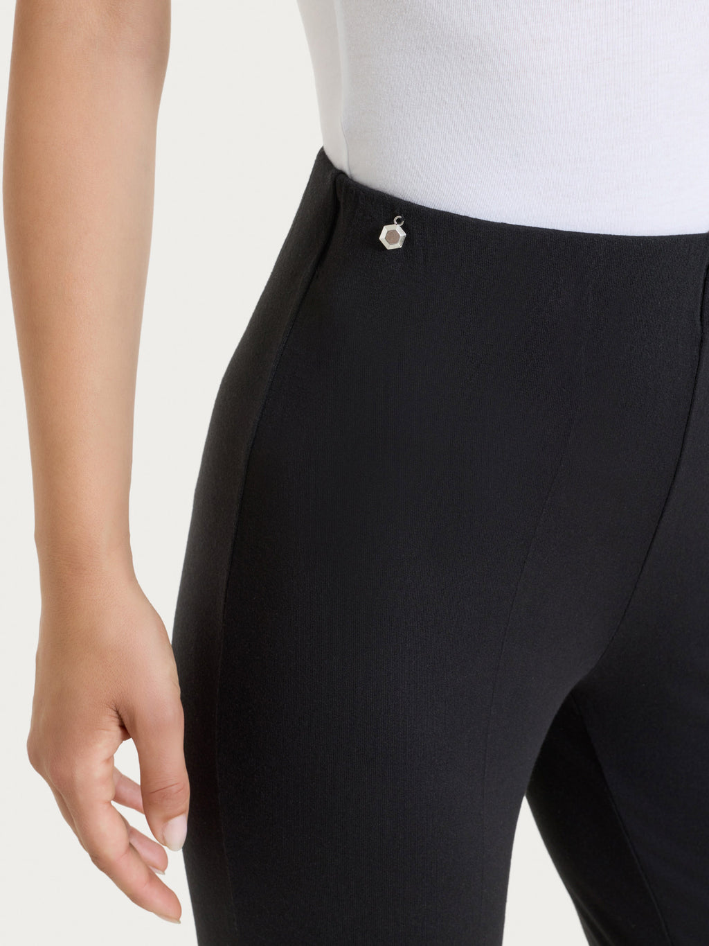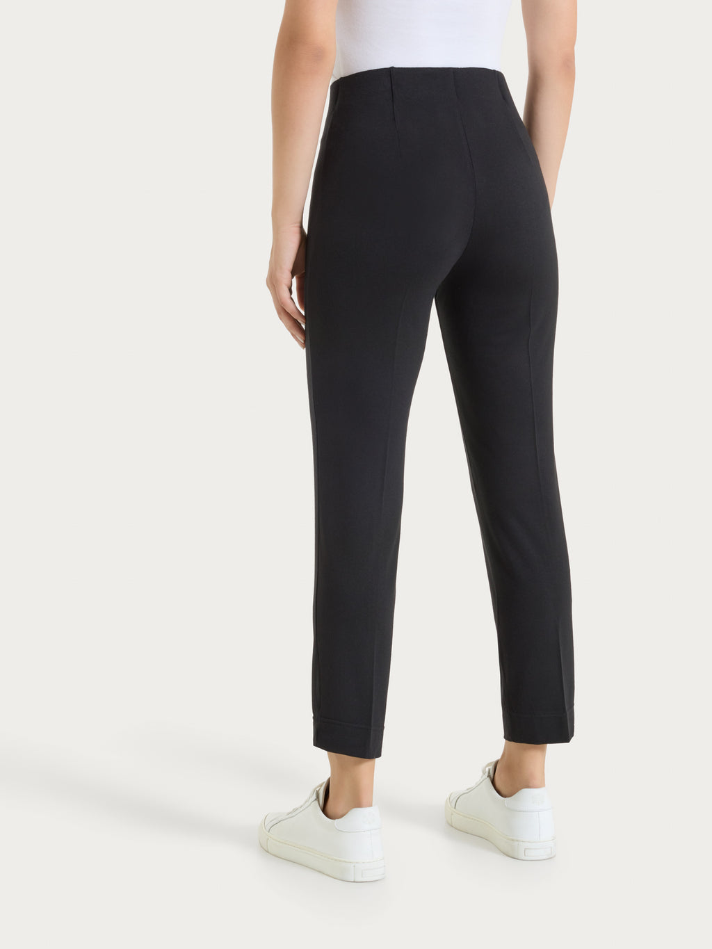 Questo modello è costruito con vita elasticizzata, senza tasche e fondo con spacchetto.