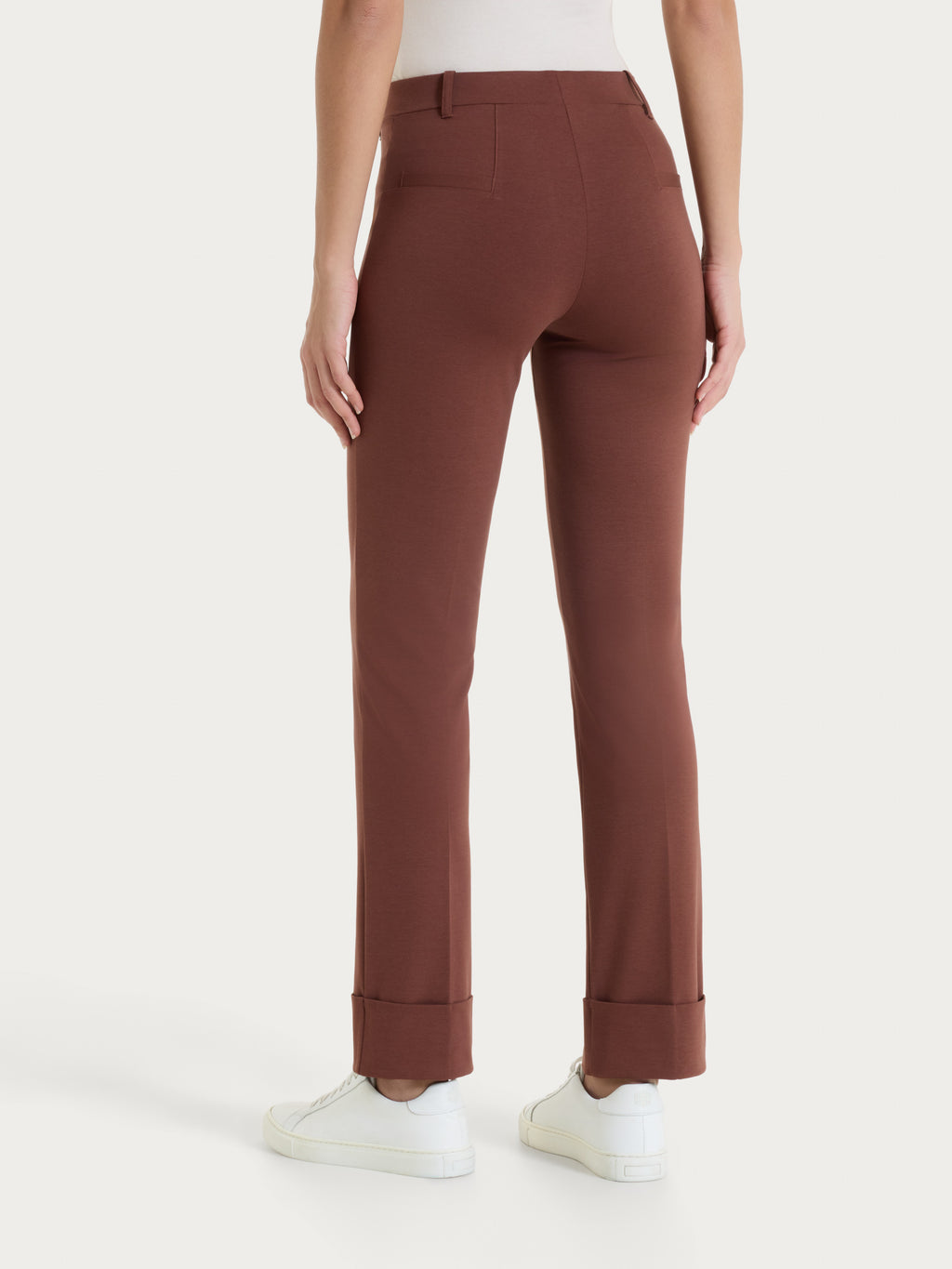 La lunghezza è sopra la caviglia e il fondo è caratterizzato da un delicato orlo fisso. Le tasche posteriori sono finte per offrire la giusta estetica senza inficiarne la vestibilità.