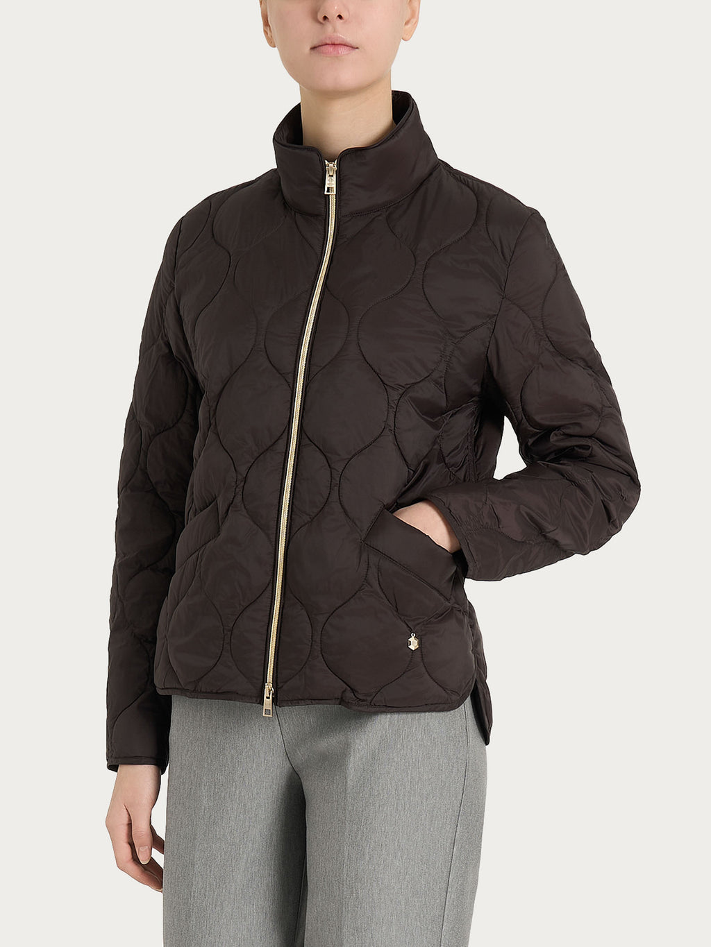 Piumino leggero ed autunnale con manica lunga e chiusura con zip e tasche laterali.