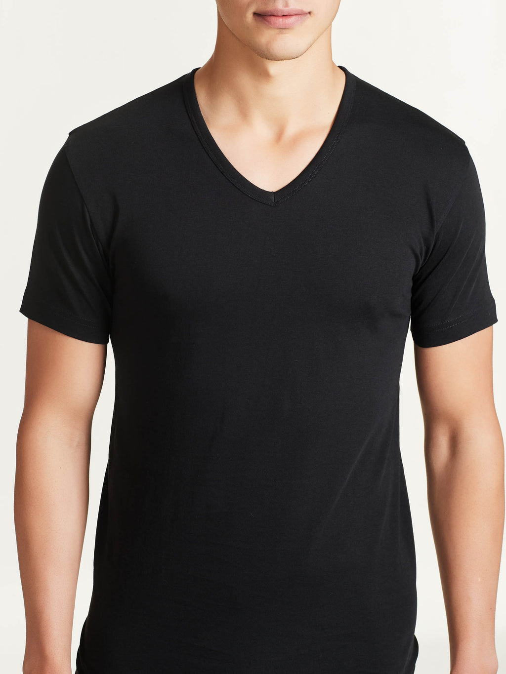 Maglietta con scollo a V e manica corta in jersey di puro cotone con il seamless fit senza cuciture.