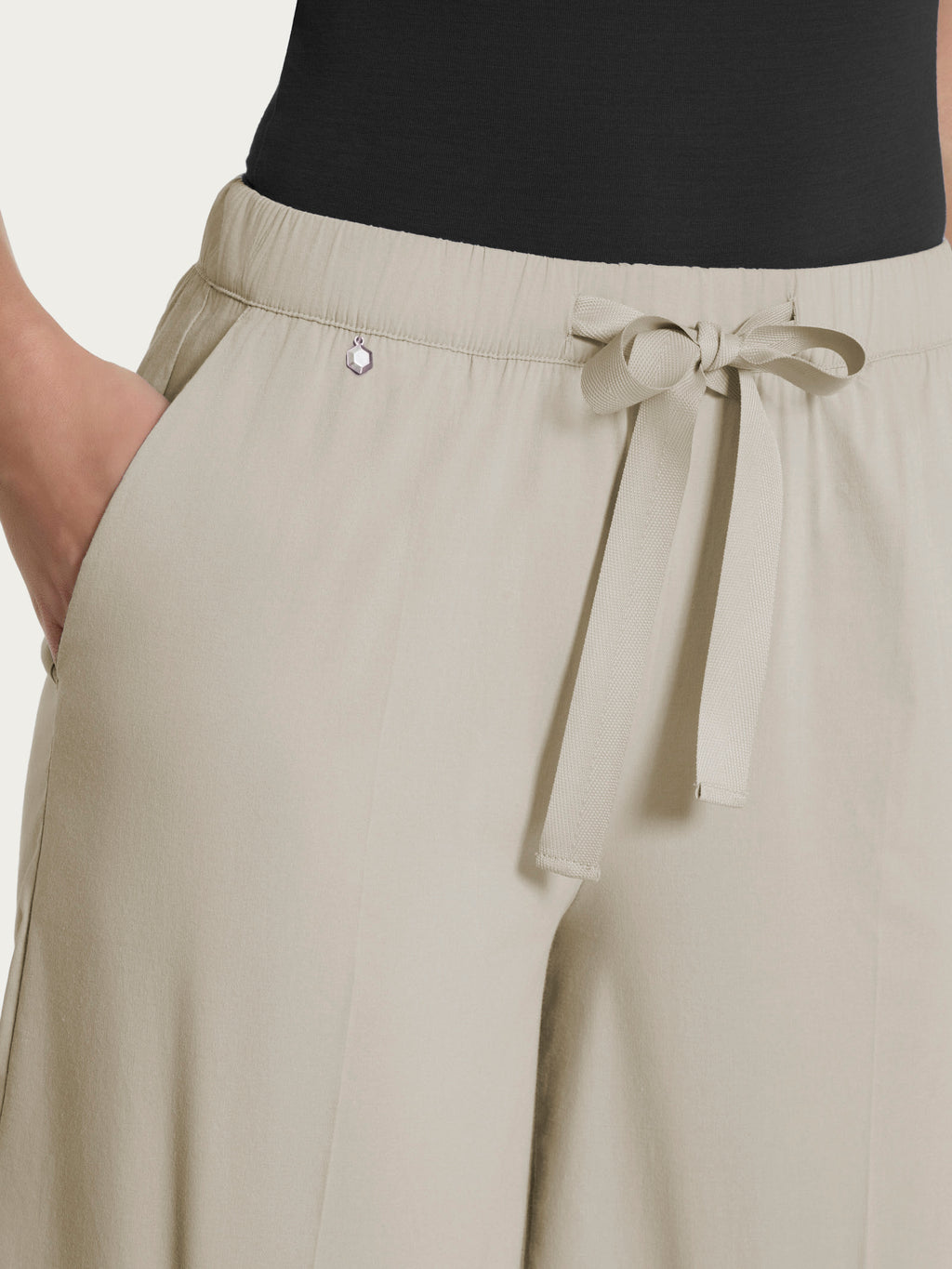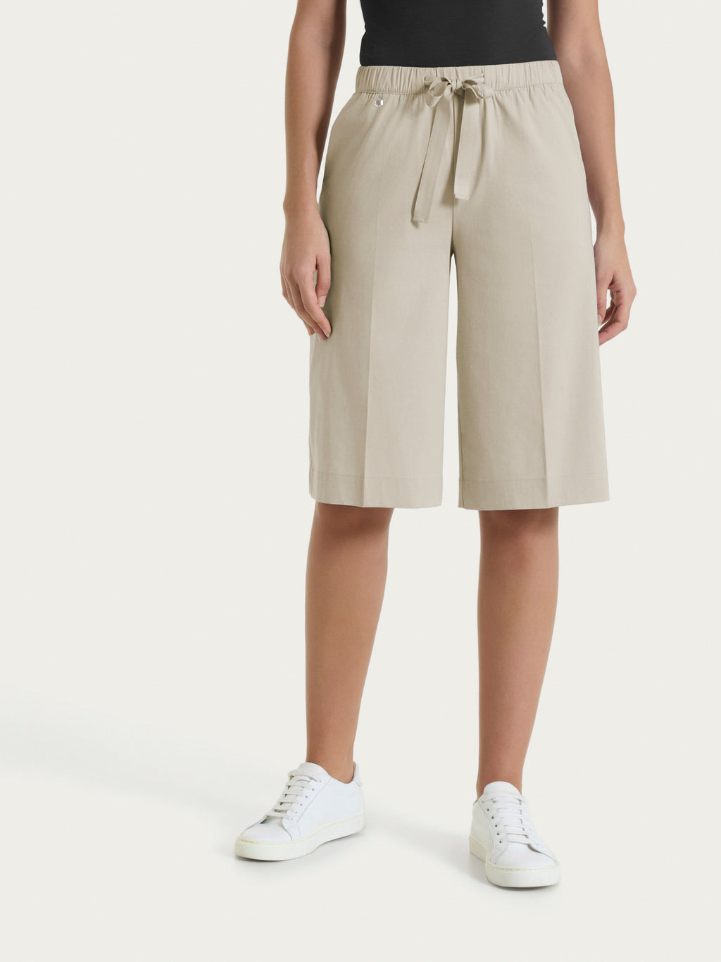Pantalone bermuda da donna.Questo modello è costruito con vita elasticizzata, pratica coulisse tono su tono e con pratiche tasche laterali alla francese...