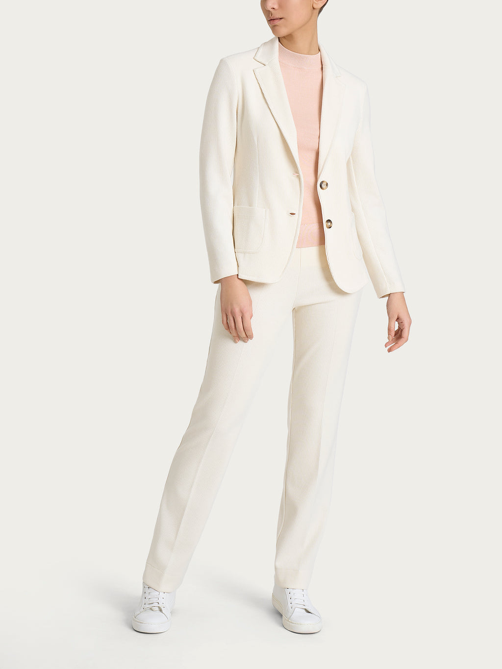 Questo modello è costruito con chiusura a due bottoni con collo rever classico e ha una vestibilità regular pensata per valorizzare ogni silhouette e offrire comfort.
