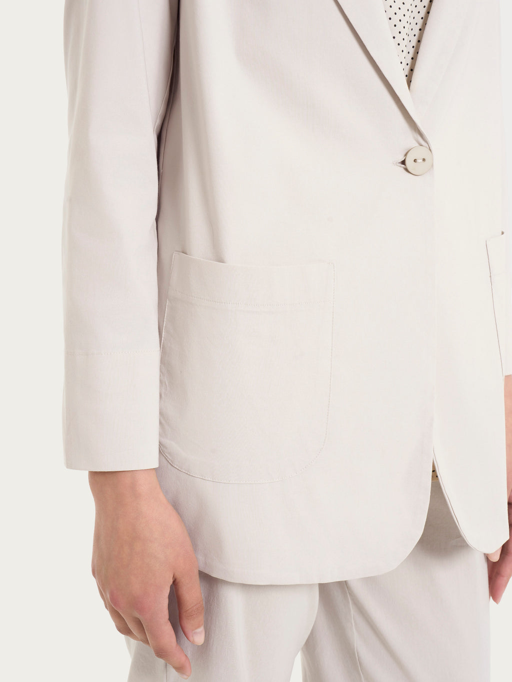 Blazer da donna destrutturato con pratiche tasche applicate e chiusura ad un bottone in Super Fresh.