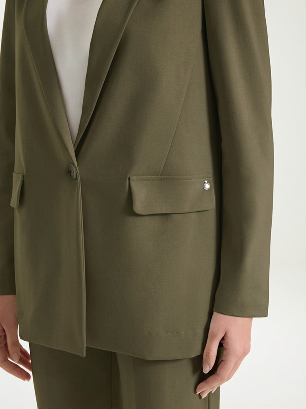 Le alette finte sono piccole patte decorative che richiamano le tasche vere e rendono il blazer più curato ed elegante, senza aggiungere volume o peso.