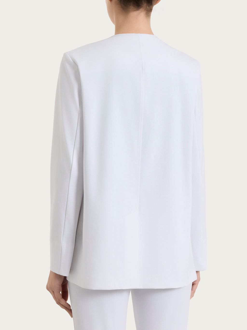 Blazer da donna, senza bottoni e senza revers, dal design essenziale e moderno.