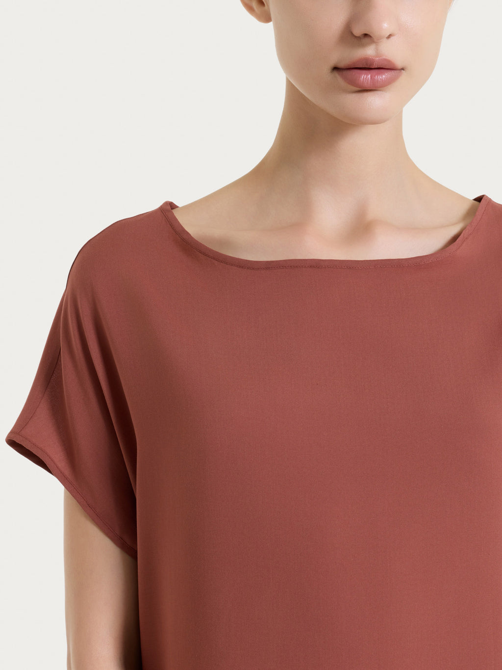 Blusa con manica a kimono in Voile Stretch - Mahogany