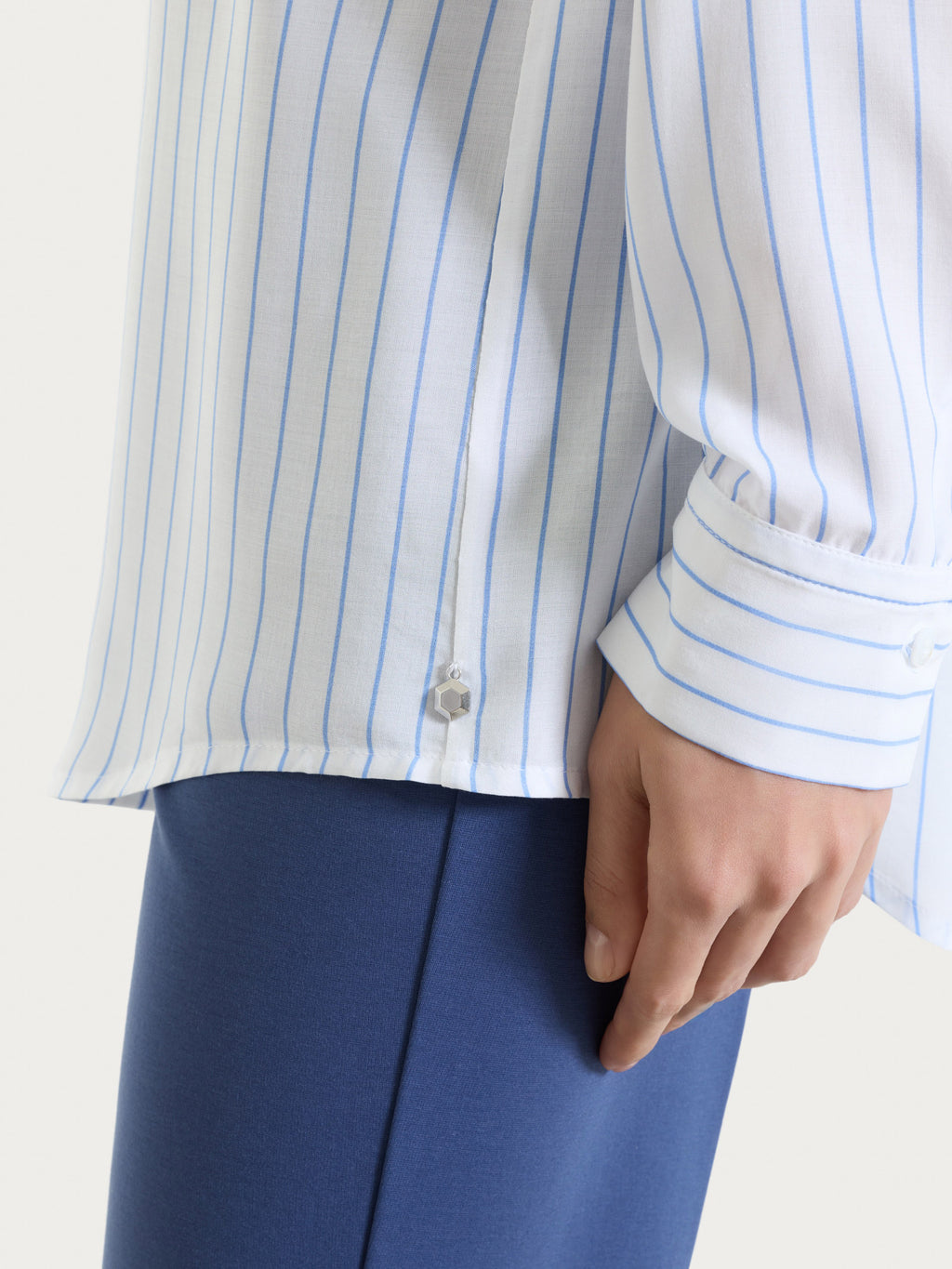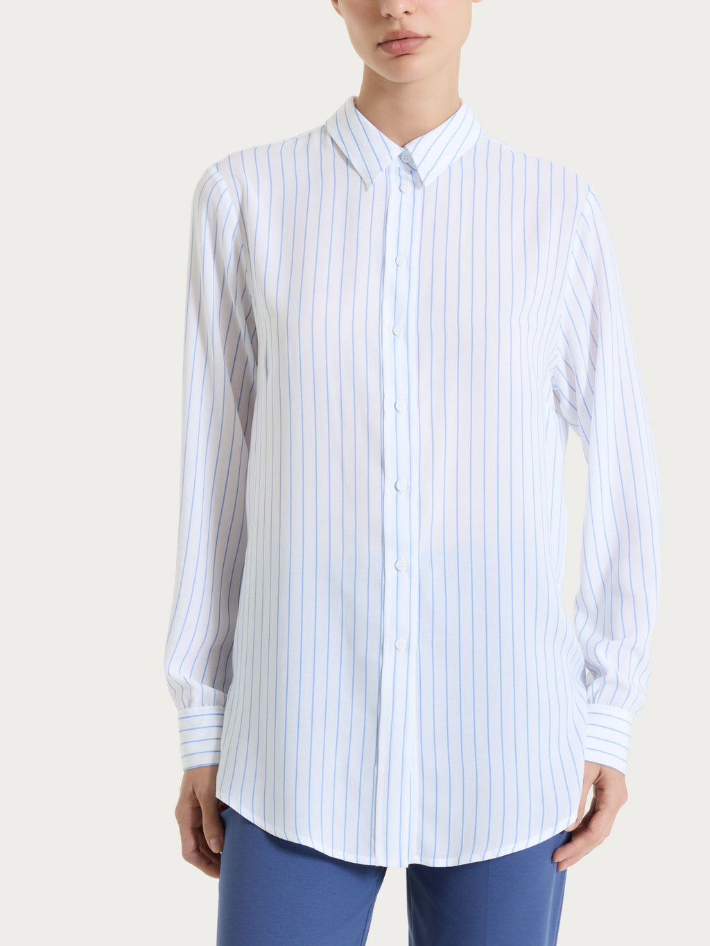 Caratterizzata da una fantasia a righe all over, pulita e attuale, che dona al capo un look fresco e facilmente abbinabile.