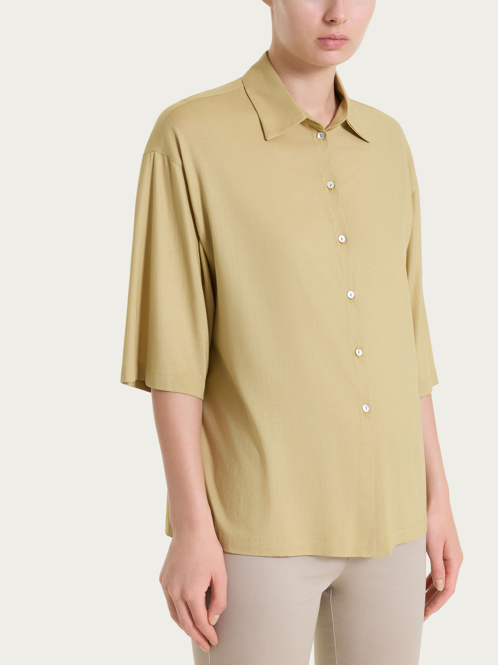 Camicia con manica 3/4 in Voile Stretch - Khaki