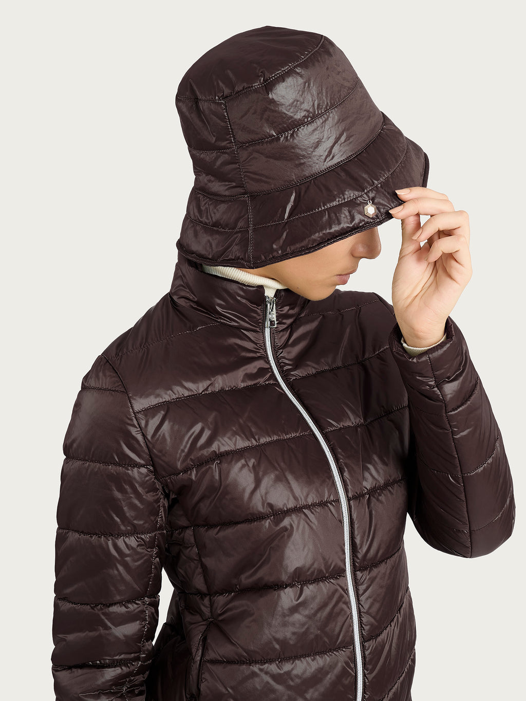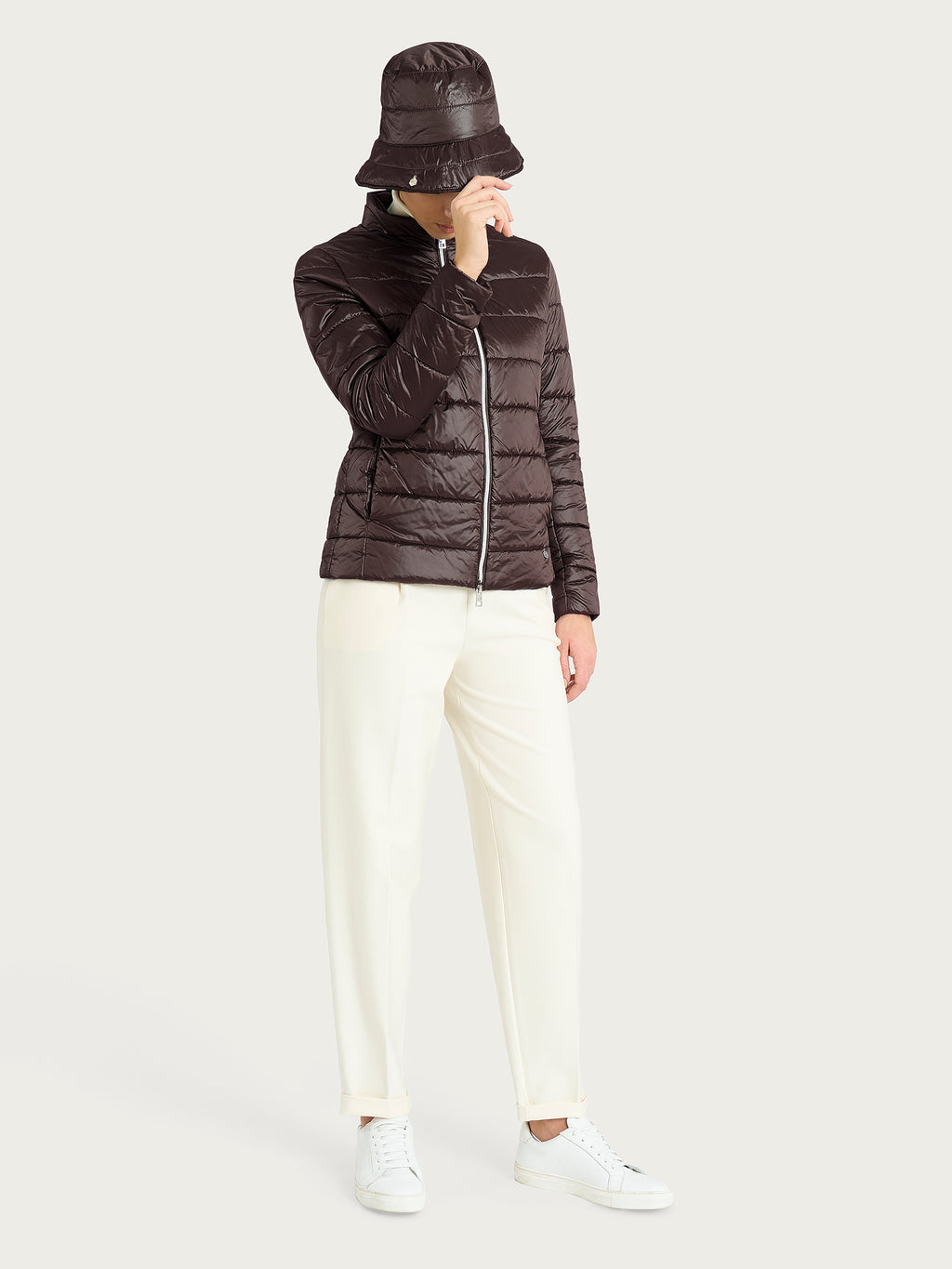 Perfettamente abbinabile al piumerino shiny, grazie alla stessa texture e tessuto, è moderno e luminoso, distinguendosi per la sua superficie brillante che cattura la luce con eleganza. Grazie a questo finish lucido dona al capo un look contemporaneo e dinamico, perfetto per aggiungere personalità anche agli outfit più semplici.
