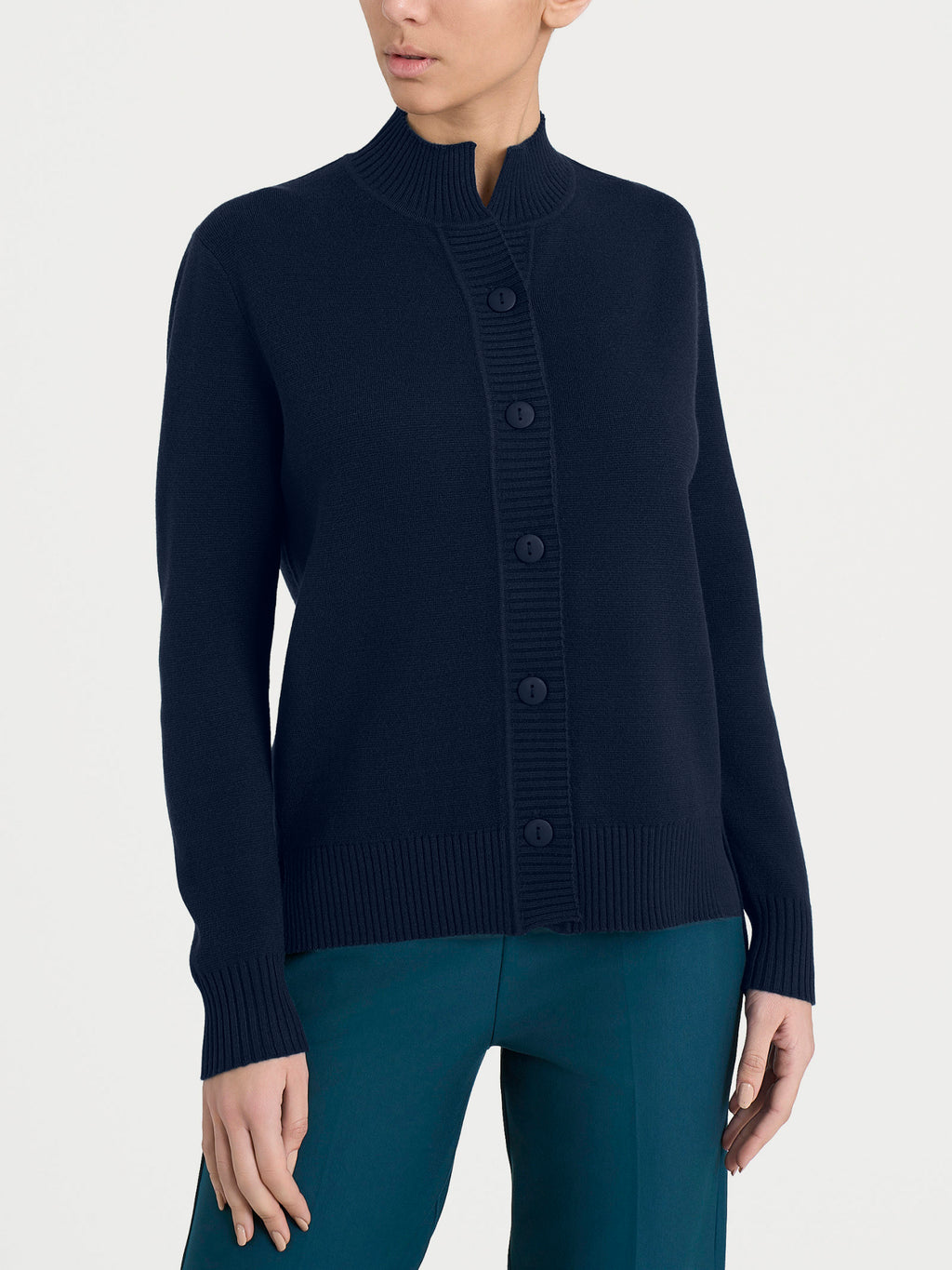 Cardigan con collo alto lupetto e chiusura a bottoni da donna in viscosa, tessuto in finezza 12, caldo, morbido e pratico.Questo modello presenta comode aperture laterali e polsini in armonia con l...