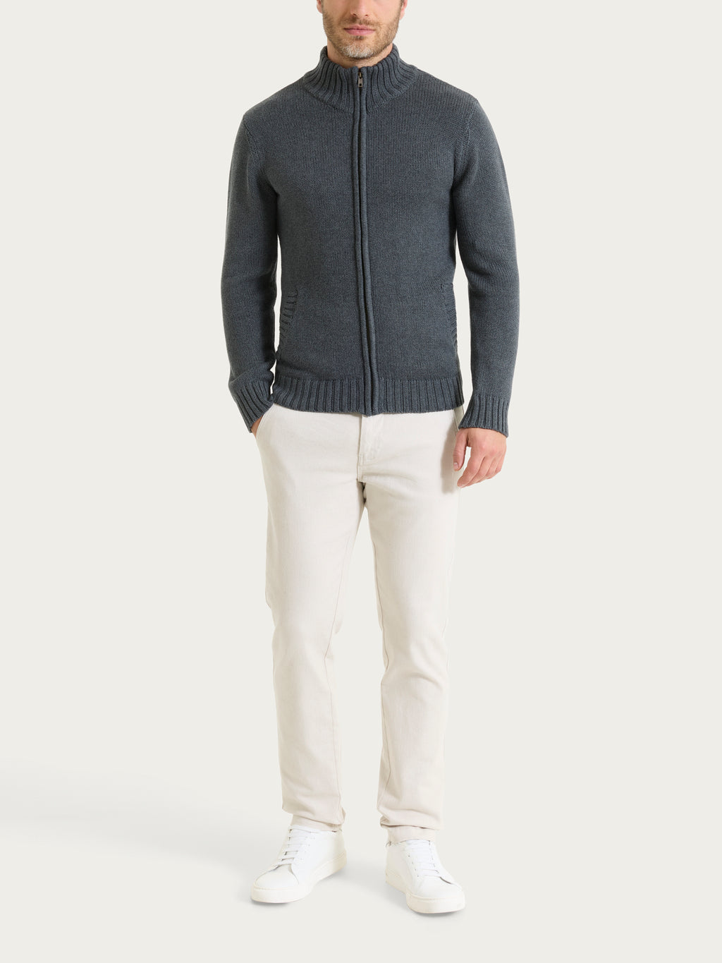 Cardigan aperto da uomo in puro cotone, tessuto in finezza 3, dalla texture leggera che garantisce calore e comfort senza appesantire.