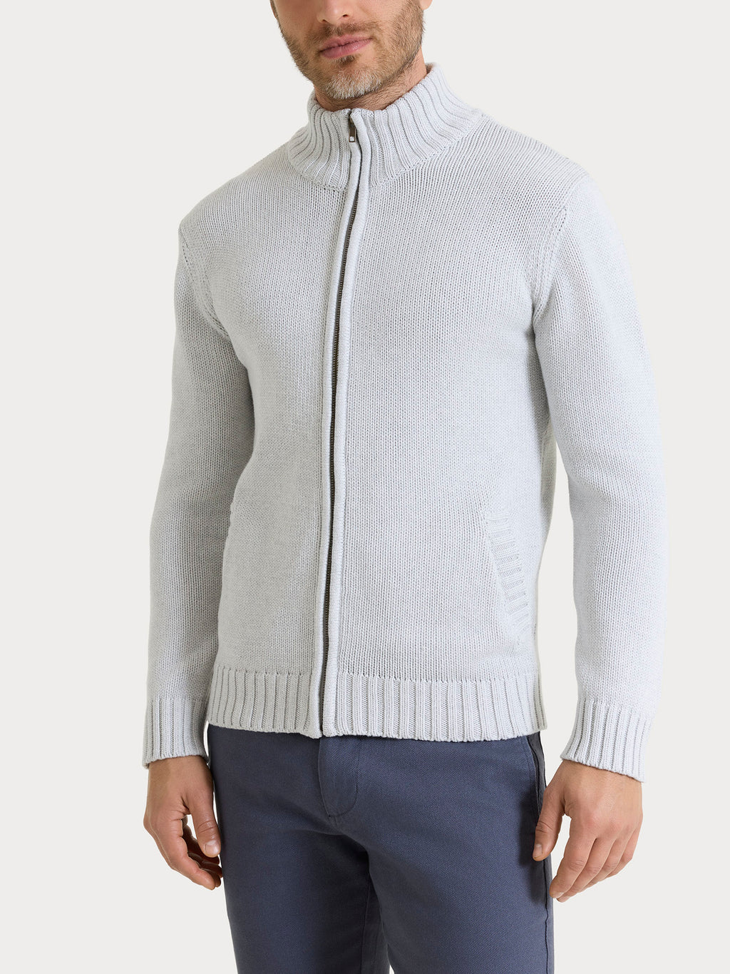 Cardigan aperto da uomo in puro cotone, tessuto in finezza 3, dalla texture leggera che garantisce calore e comfort senza appesantire.