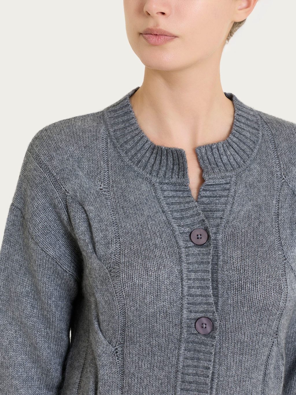 Il girocollo e l’apertura con i bottoni facilità l’indosso donando calore, mentre la finezza 5 lo rende leggero senza comprometterne il calore.